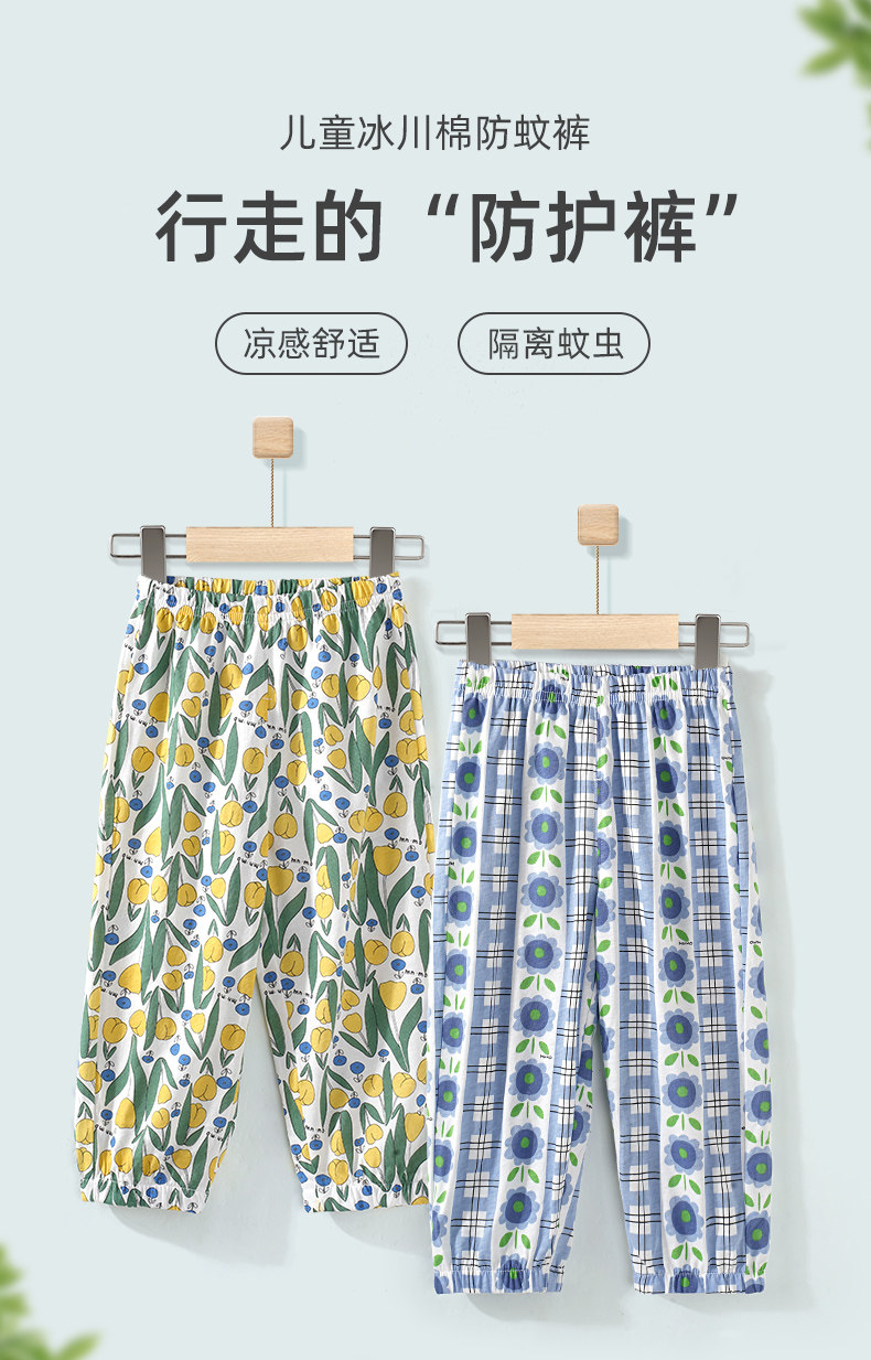 Yilala 2024 여름 어린이 모기 방지 바지 얇은 남성과 여성의 빙하 면화 스포츠 바지 아기 블루머 잠옷스토어 가기