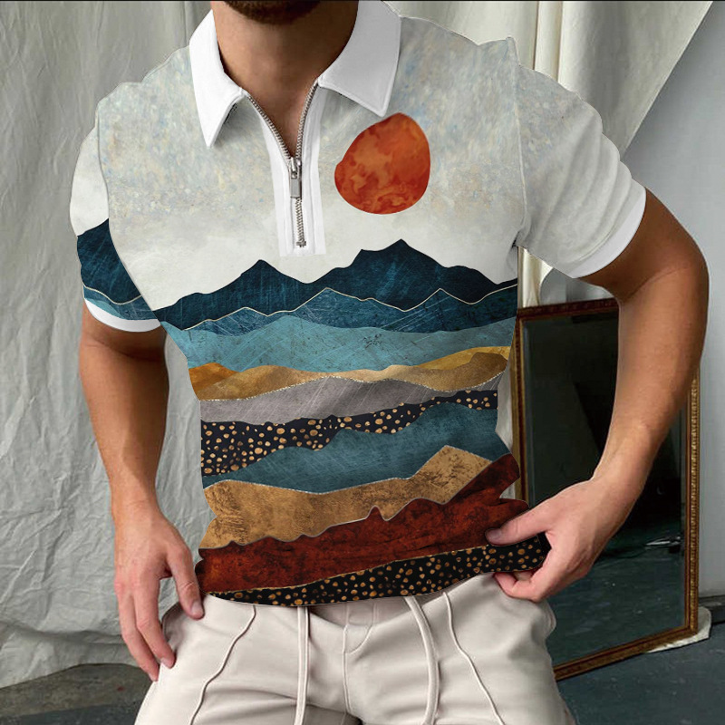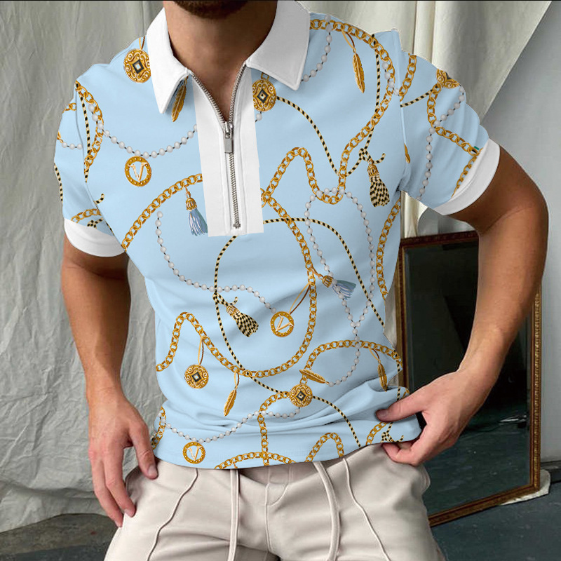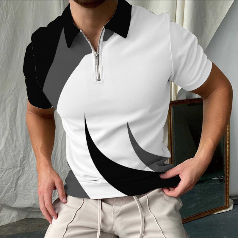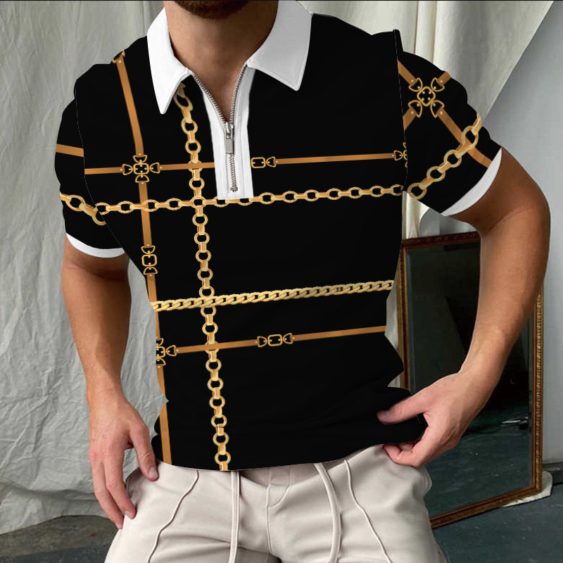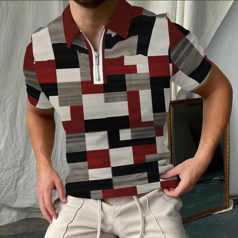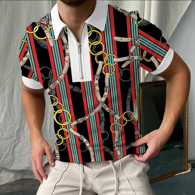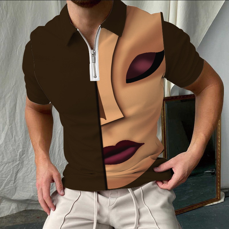 새로운 크로스 보더 3dpolo 셔츠 남성용 디지털 인쇄 루즈 캐주얼 탑 여름 지퍼 폴로 셔츠 남성용 반팔
