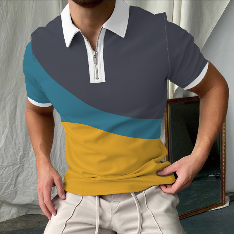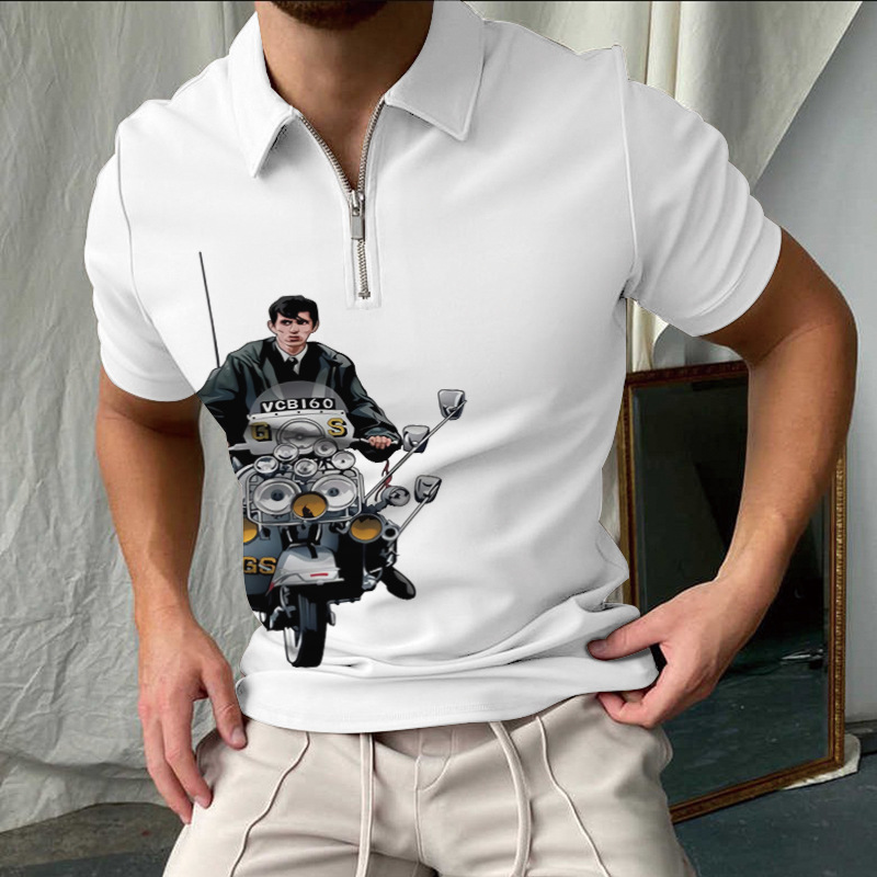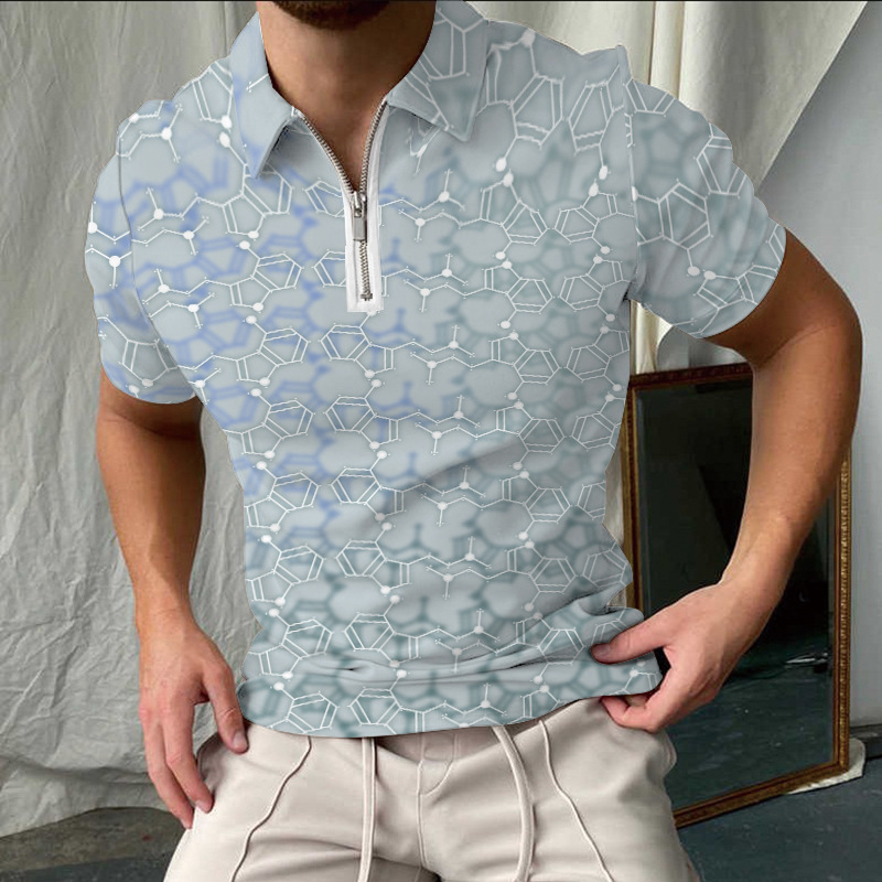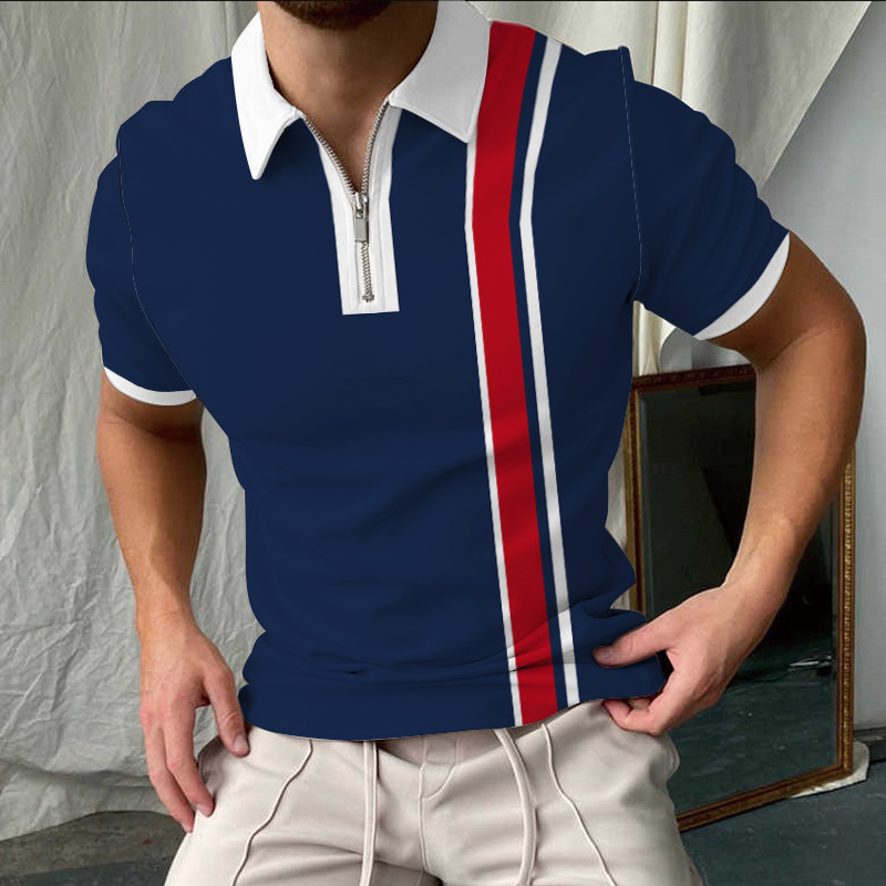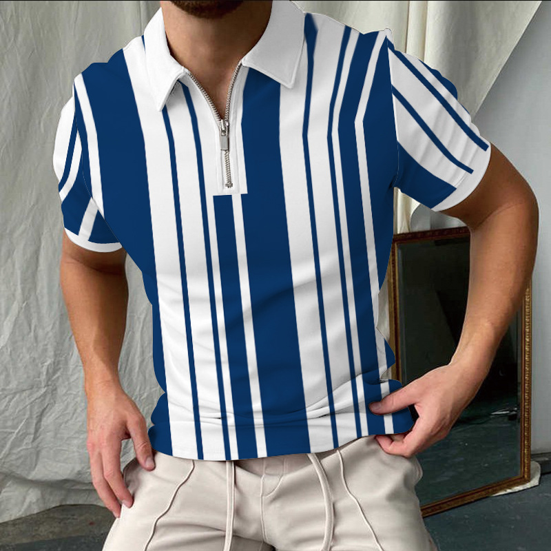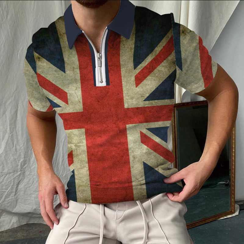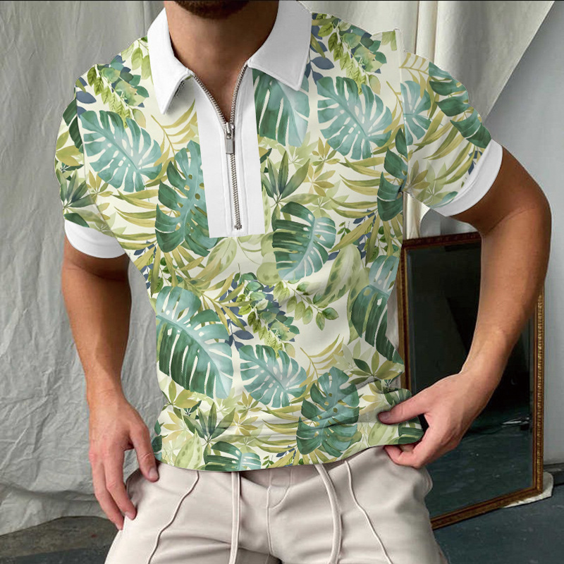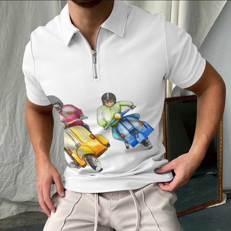 새로운 크로스 보더 3dpolo 셔츠 남성용 디지털 인쇄 루즈 캐주얼 탑 여름 지퍼 폴로 셔츠 남성용 반팔