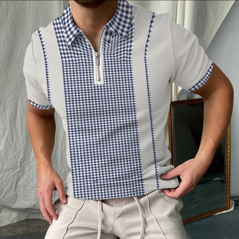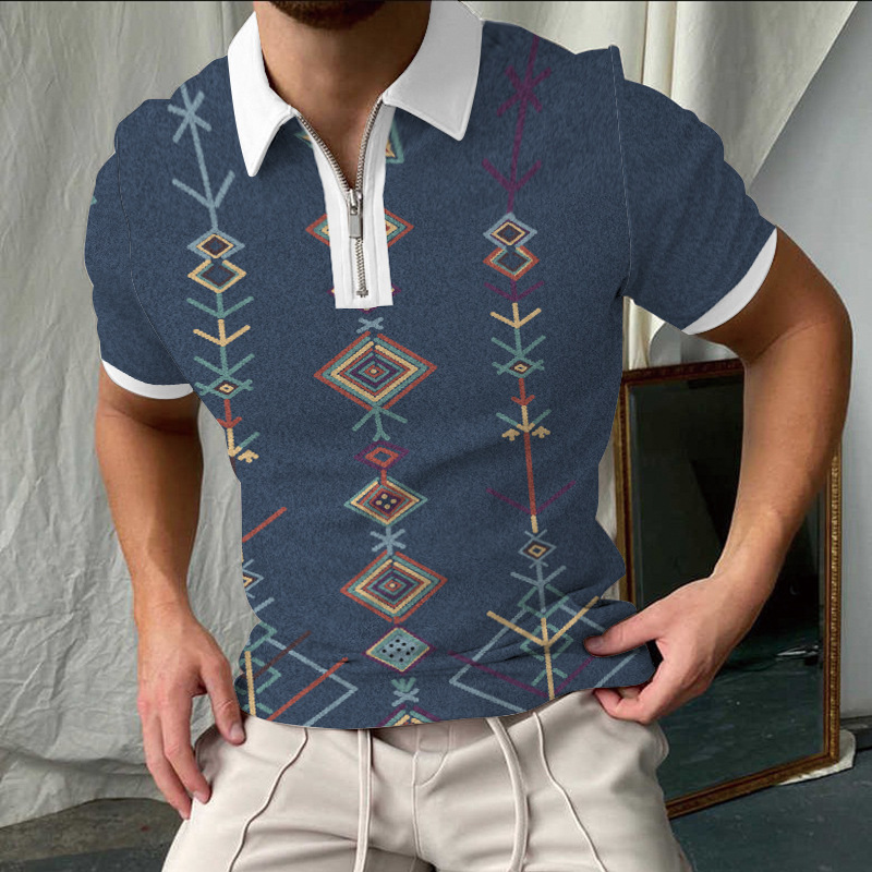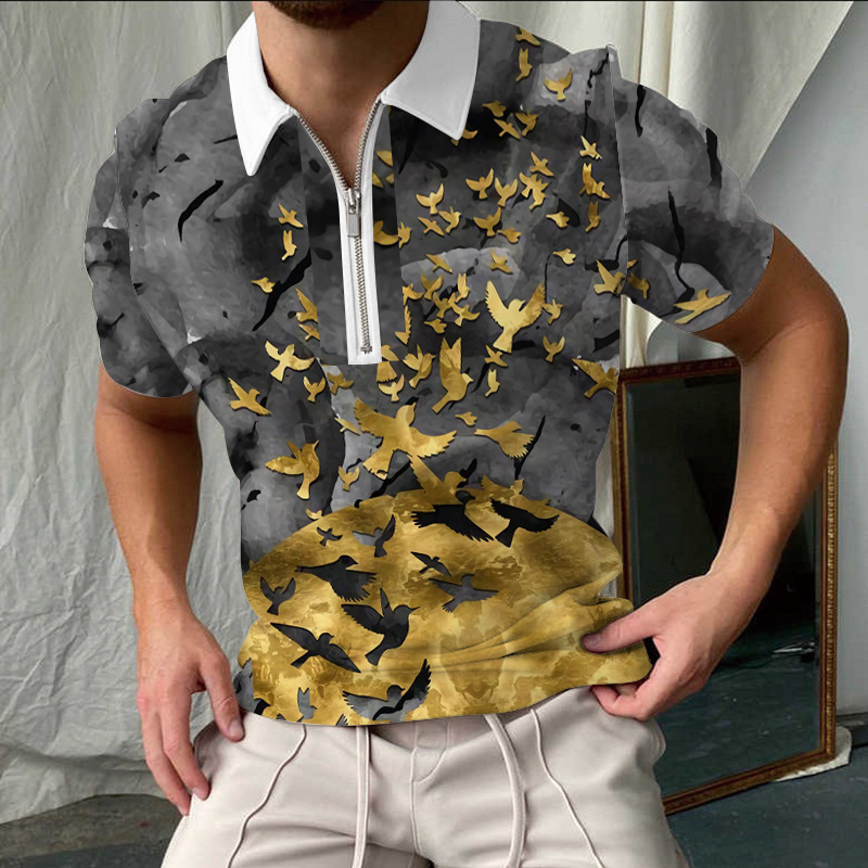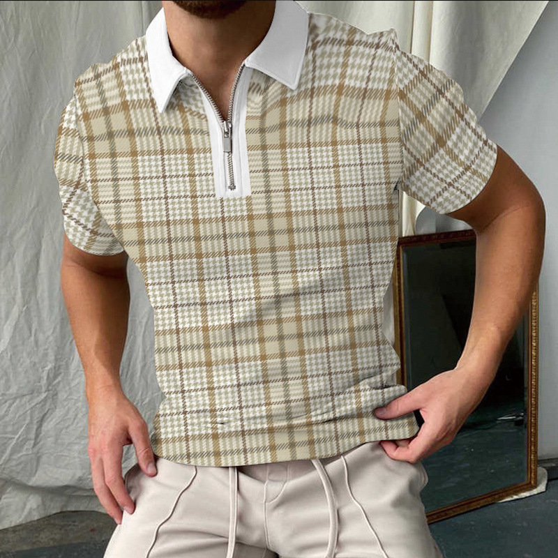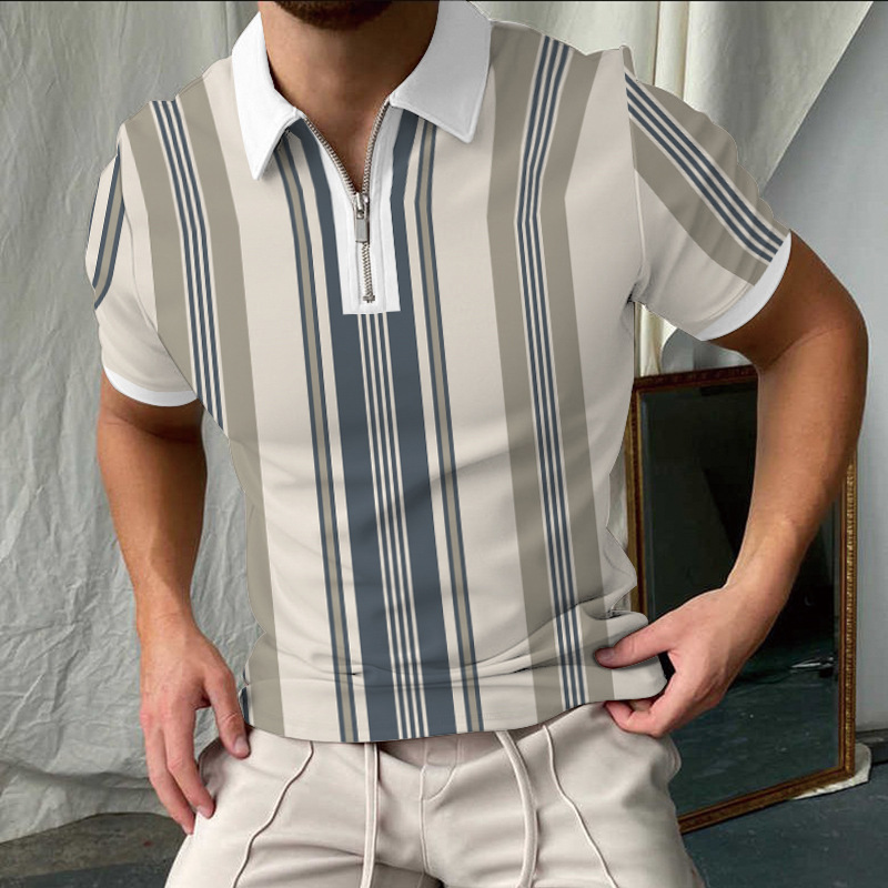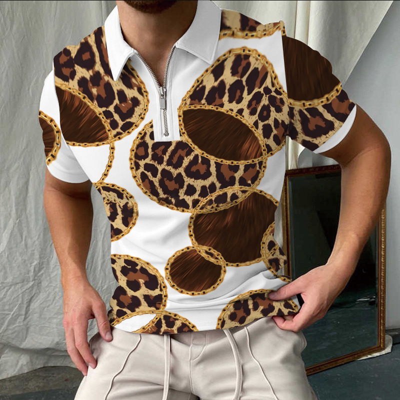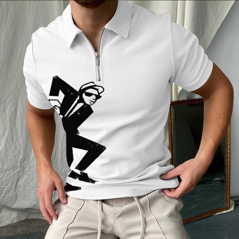 새로운 크로스 보더 3dpolo 셔츠 남성용 디지털 인쇄 루즈 캐주얼 탑 여름 지퍼 폴로 셔츠 남성용 반팔