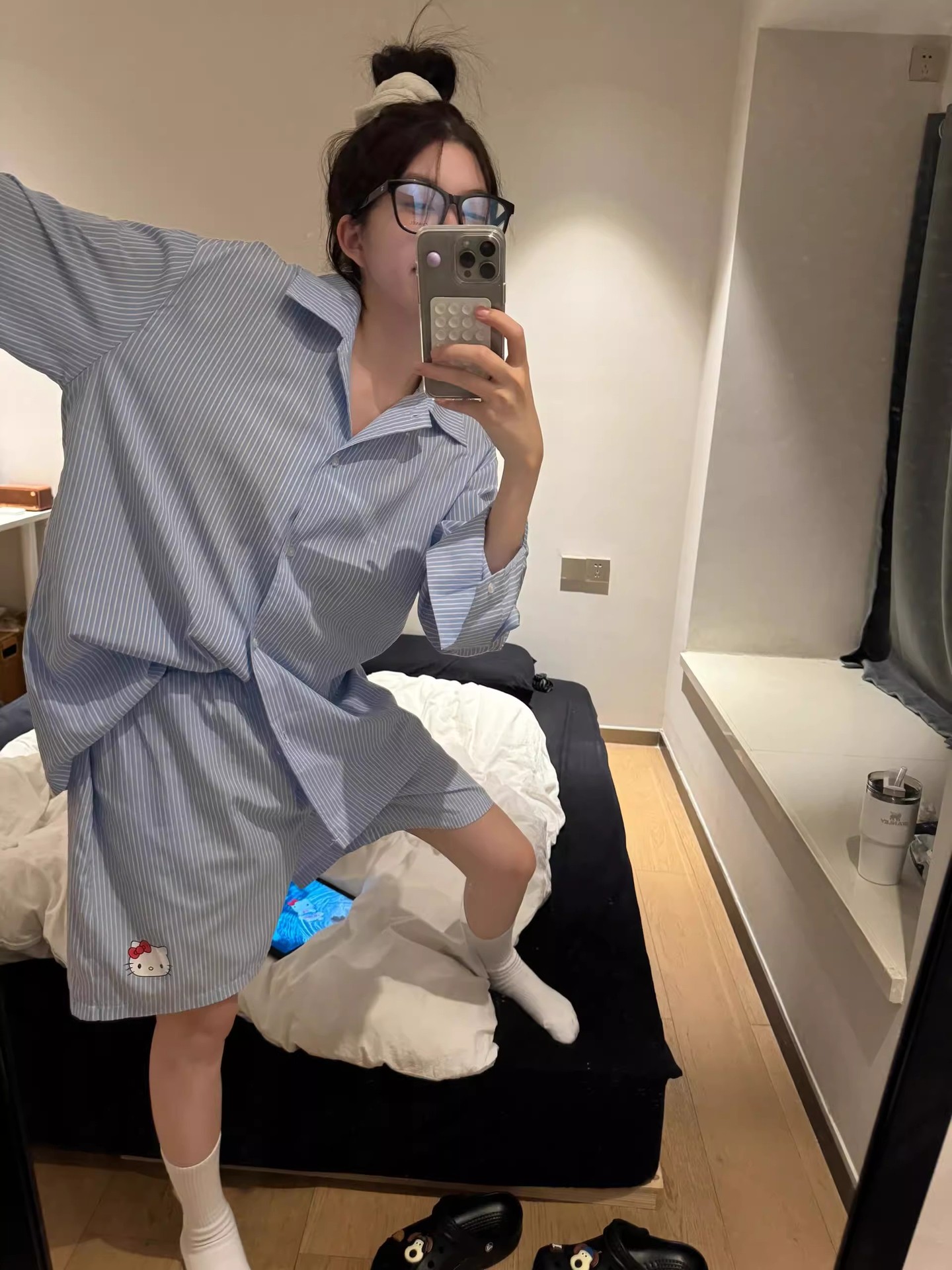 한국 인 만화 잠옷 여성 여름 반바지 긴 소매 세트 플러스 사이즈 새로운 국경 홈 옷 귀여운 외주스토어 가기