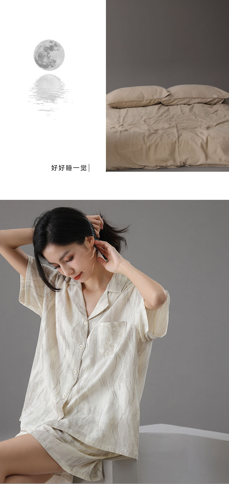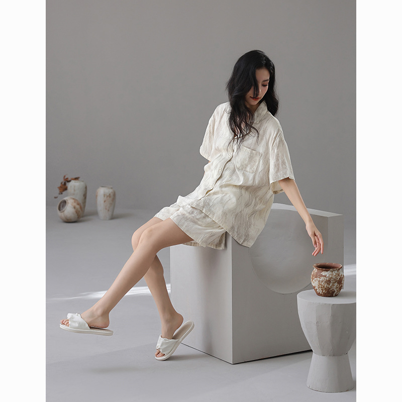 [대나무 섬유] 여름 커플 잠옷 대나무 면 와비사비 스타일 통기성 시원한 잠옷 여성 반팔 남성 가정복 여름스토어 가기