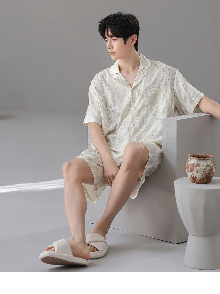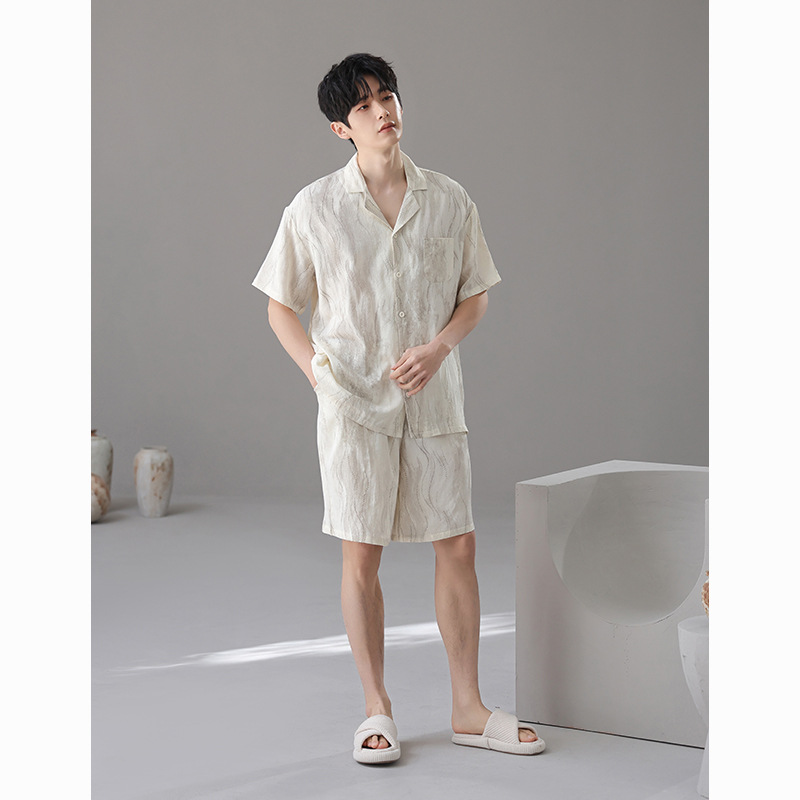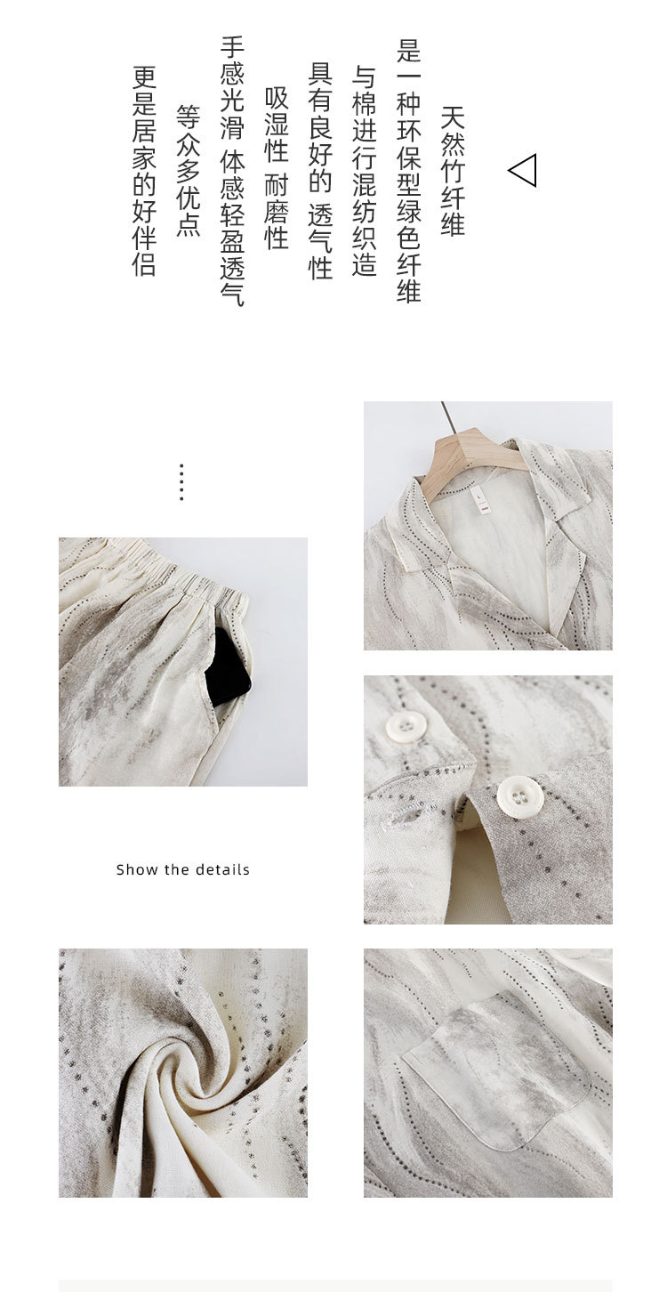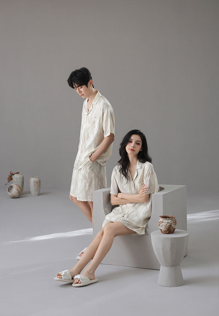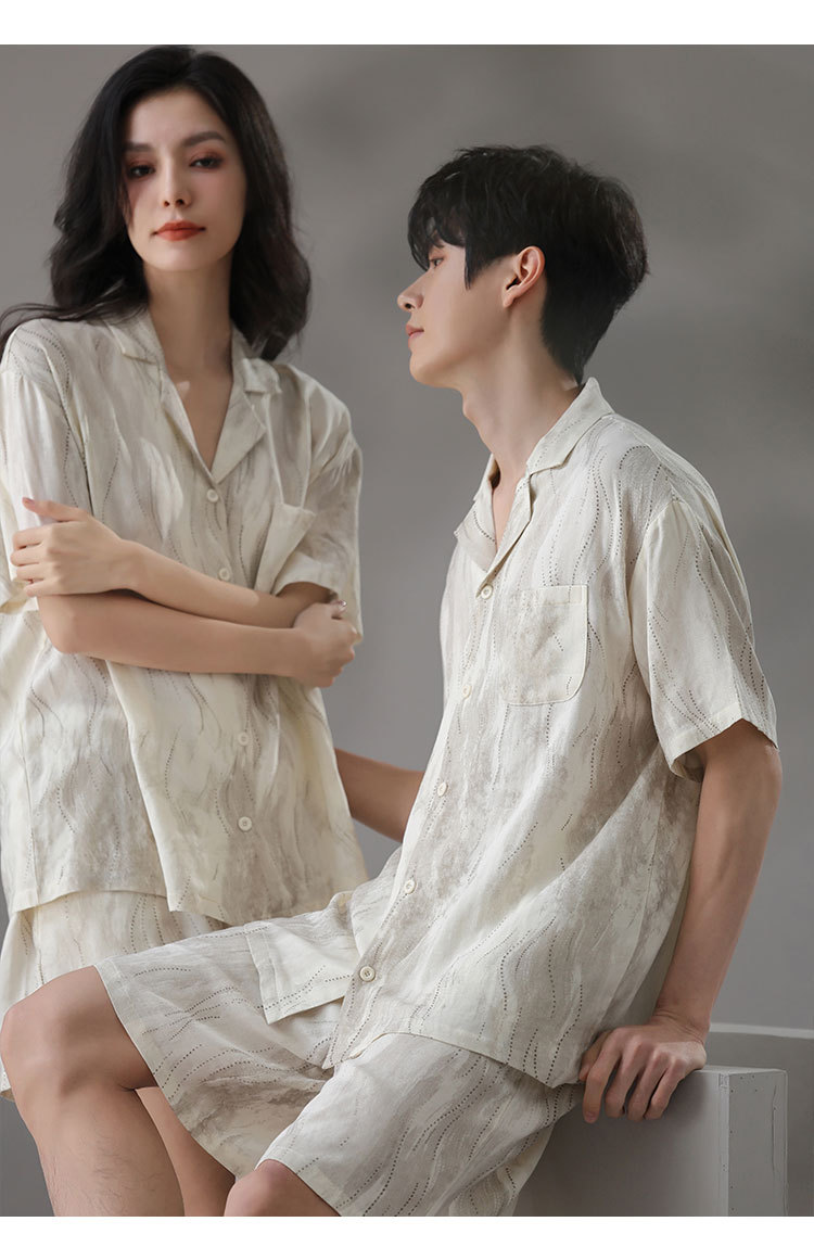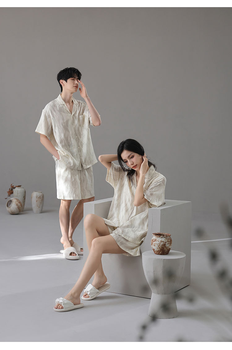 [대나무 섬유] 여름 커플 잠옷 대나무 면 와비사비 스타일 통기성 시원한 잠옷 여성 반팔 남성 가정복 여름
