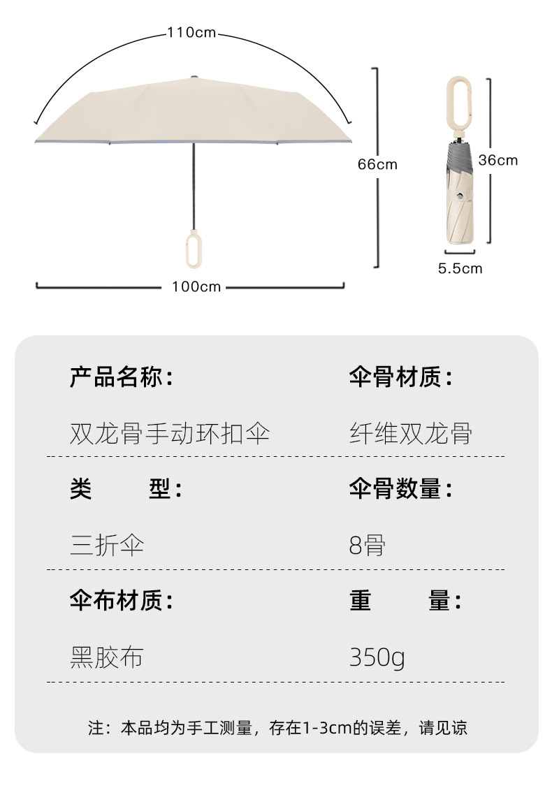 수동 이중 뼈대 강화 고리형 우산, 야외 휴대용 반사 스트립 블랙 글로스 우산, 비/햇빛 겸용 광고 우산 맞춤 제작