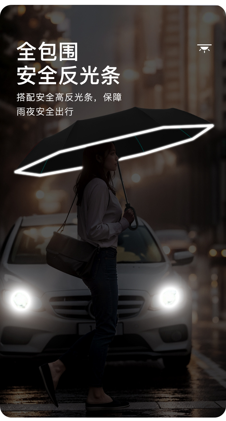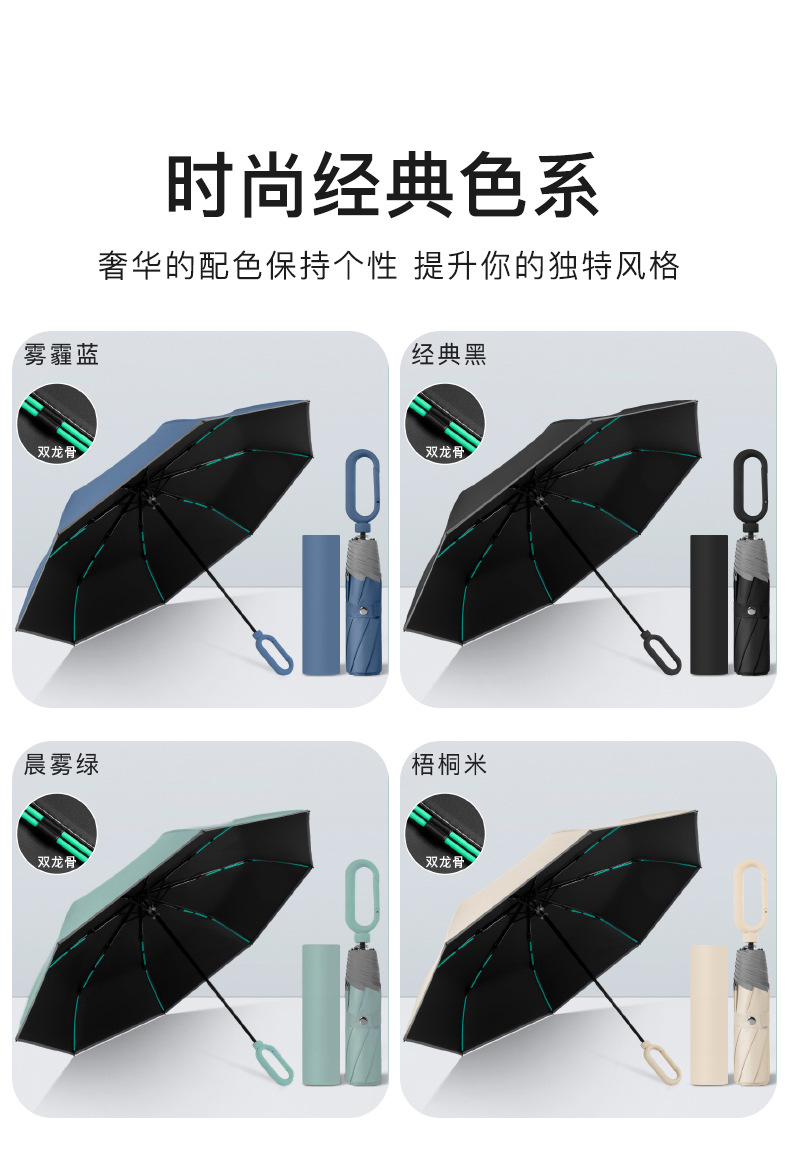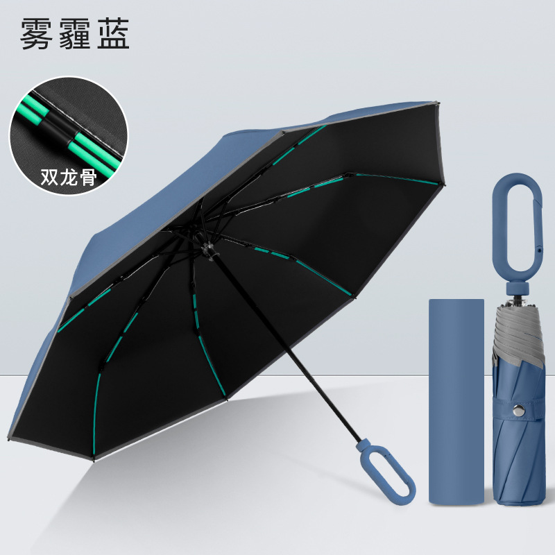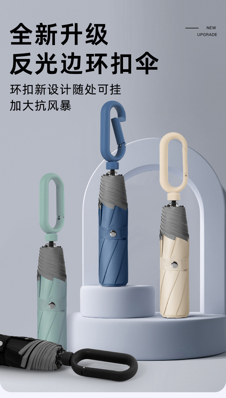 수동 이중 뼈대 강화 고리형 우산, 야외 휴대용 반사 스트립 블랙 글로스 우산, 비/햇빛 겸용 광고 우산 맞춤 제작스토어 가기