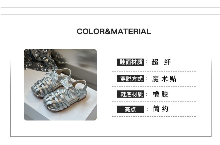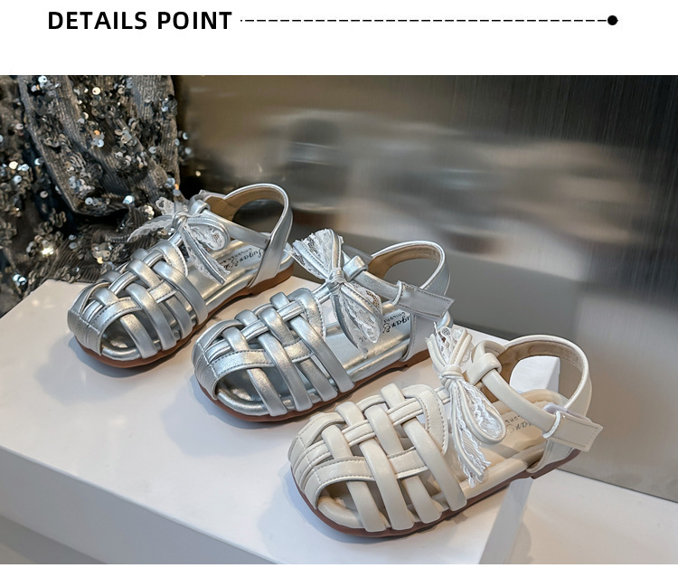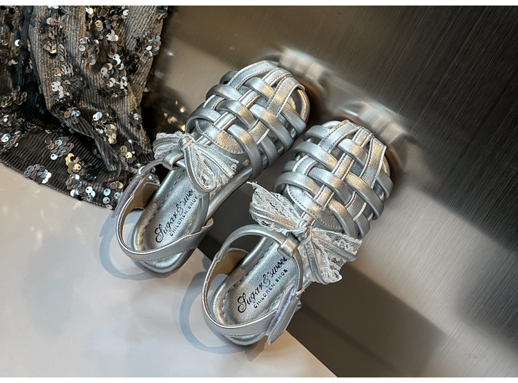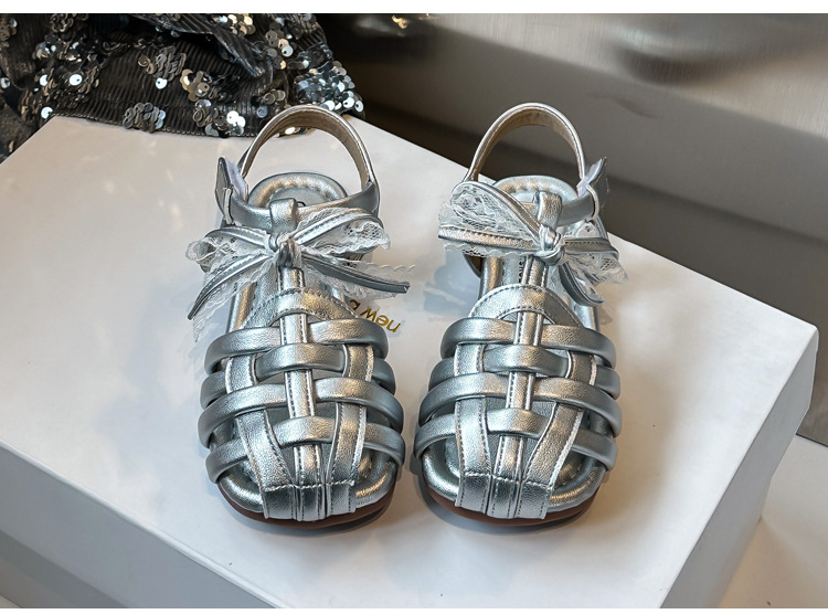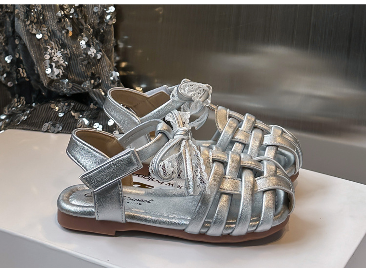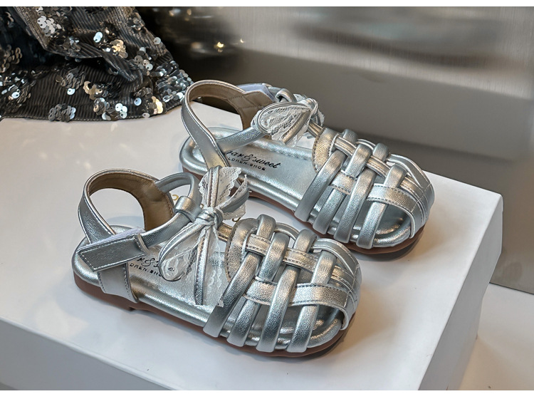 바오터우 샌들 2025 봄 여름 한국어 버전 어린이와 소녀 실버 공주 신발 활 빈 신발