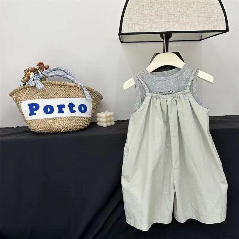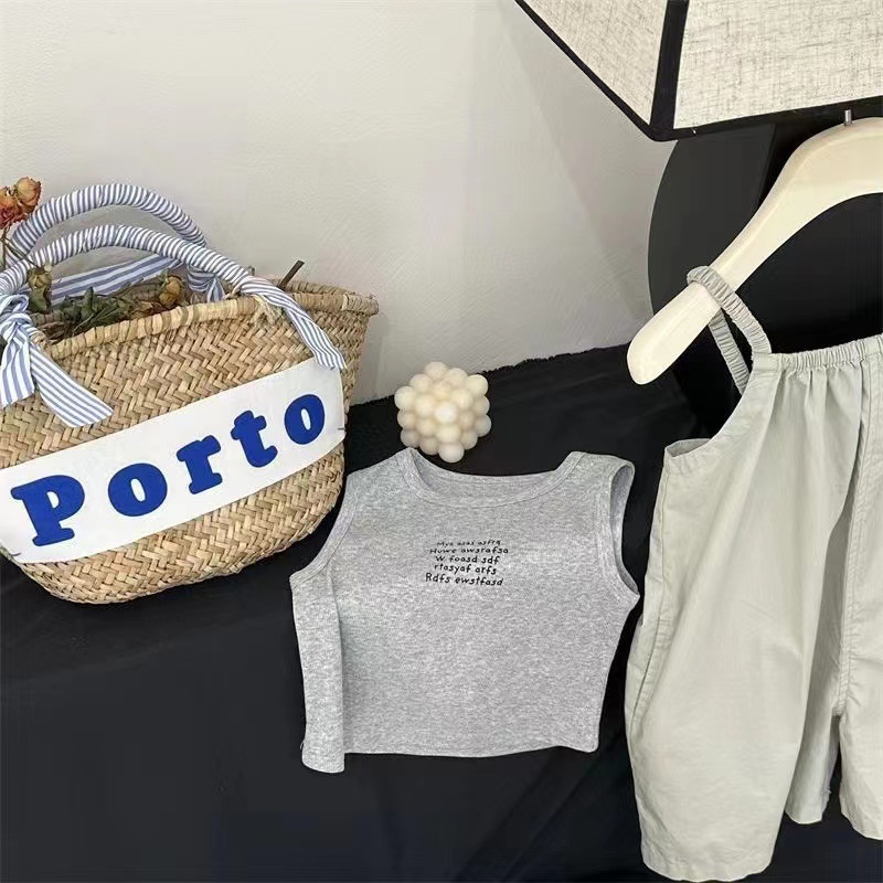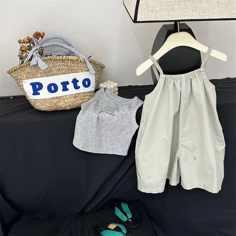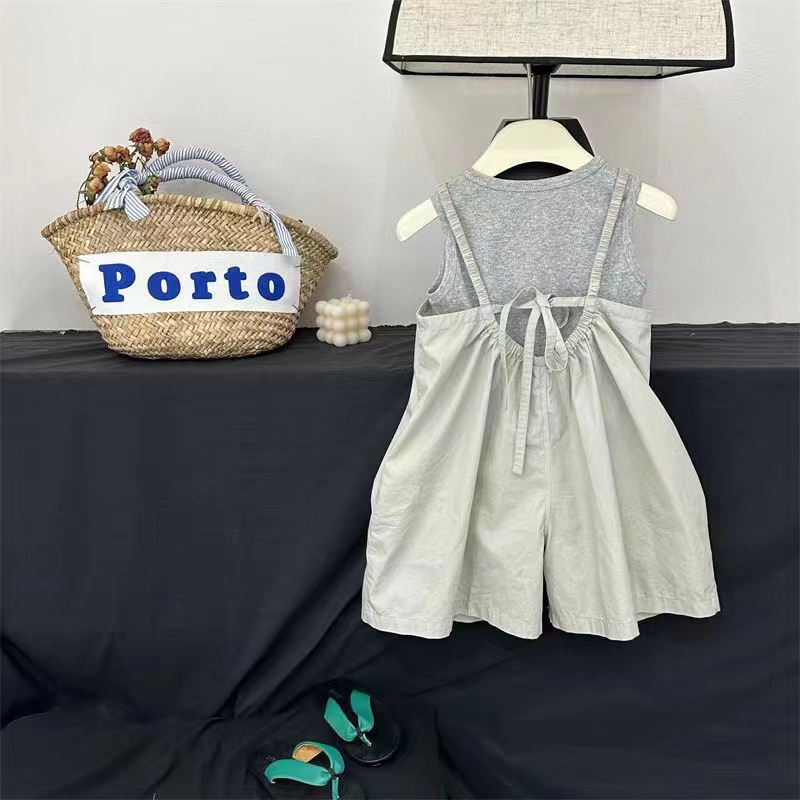 여름 어린이 착용 여자 서양식 서스펜더 바지 세트 한국 스타일 아기 소녀 카미솔 투피스 세트 유행 0181A002