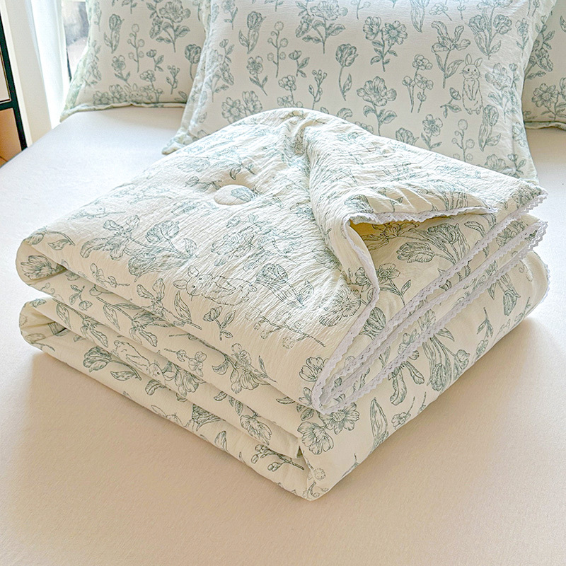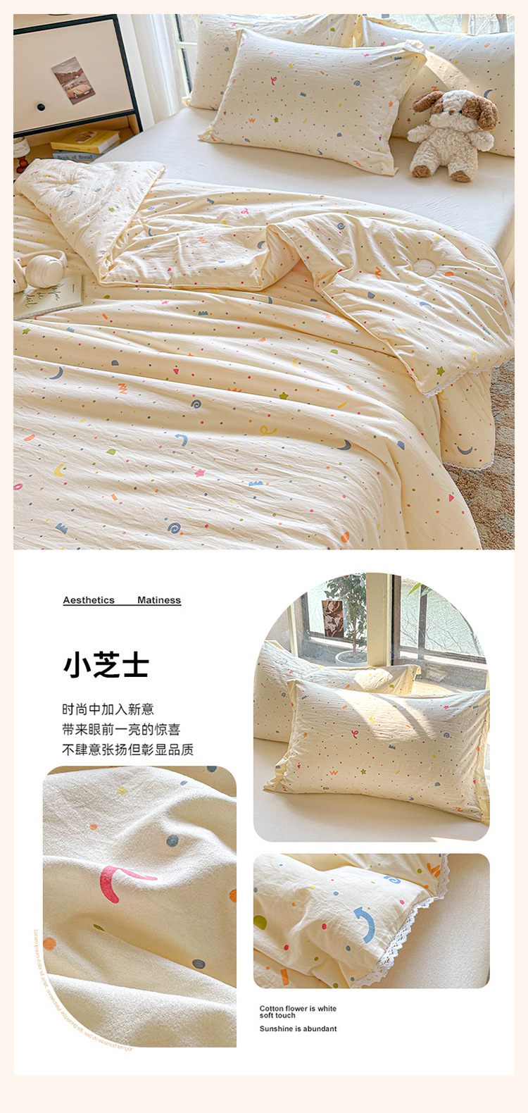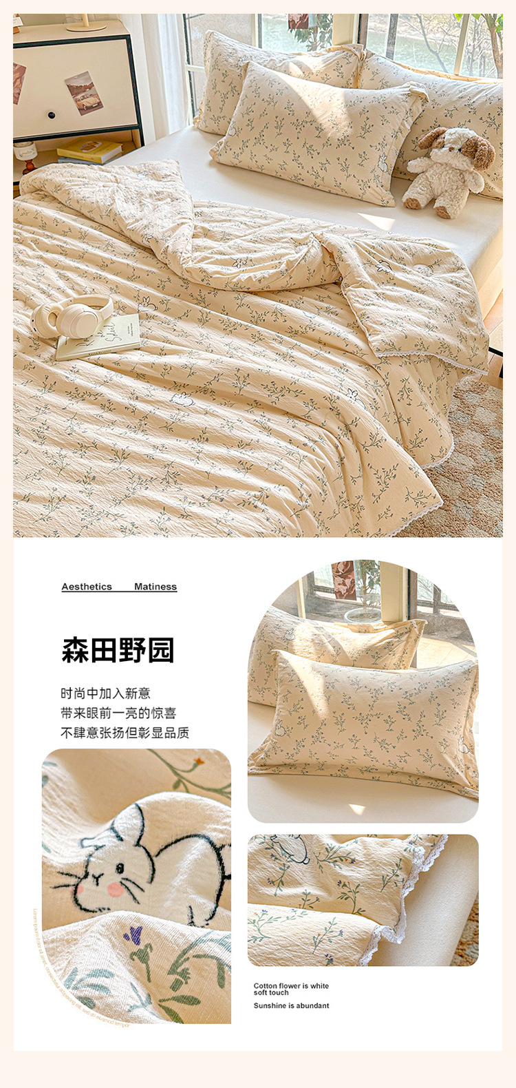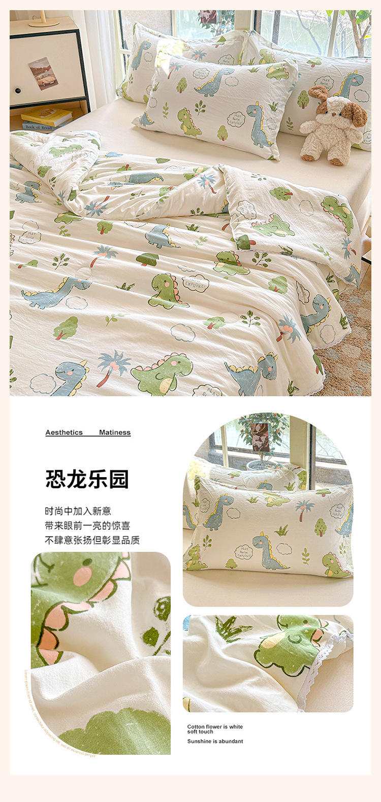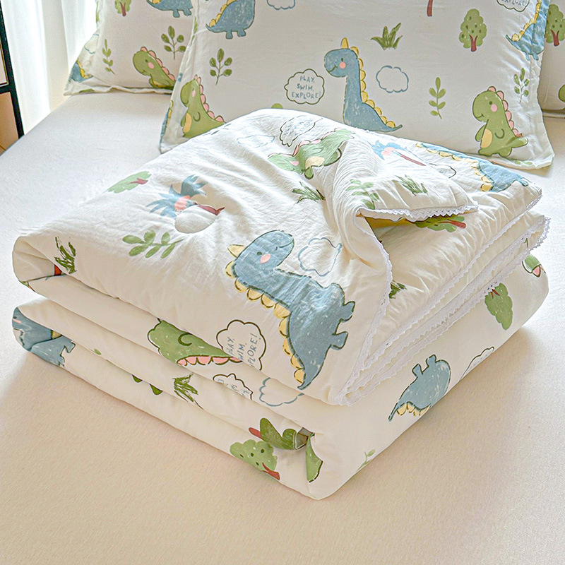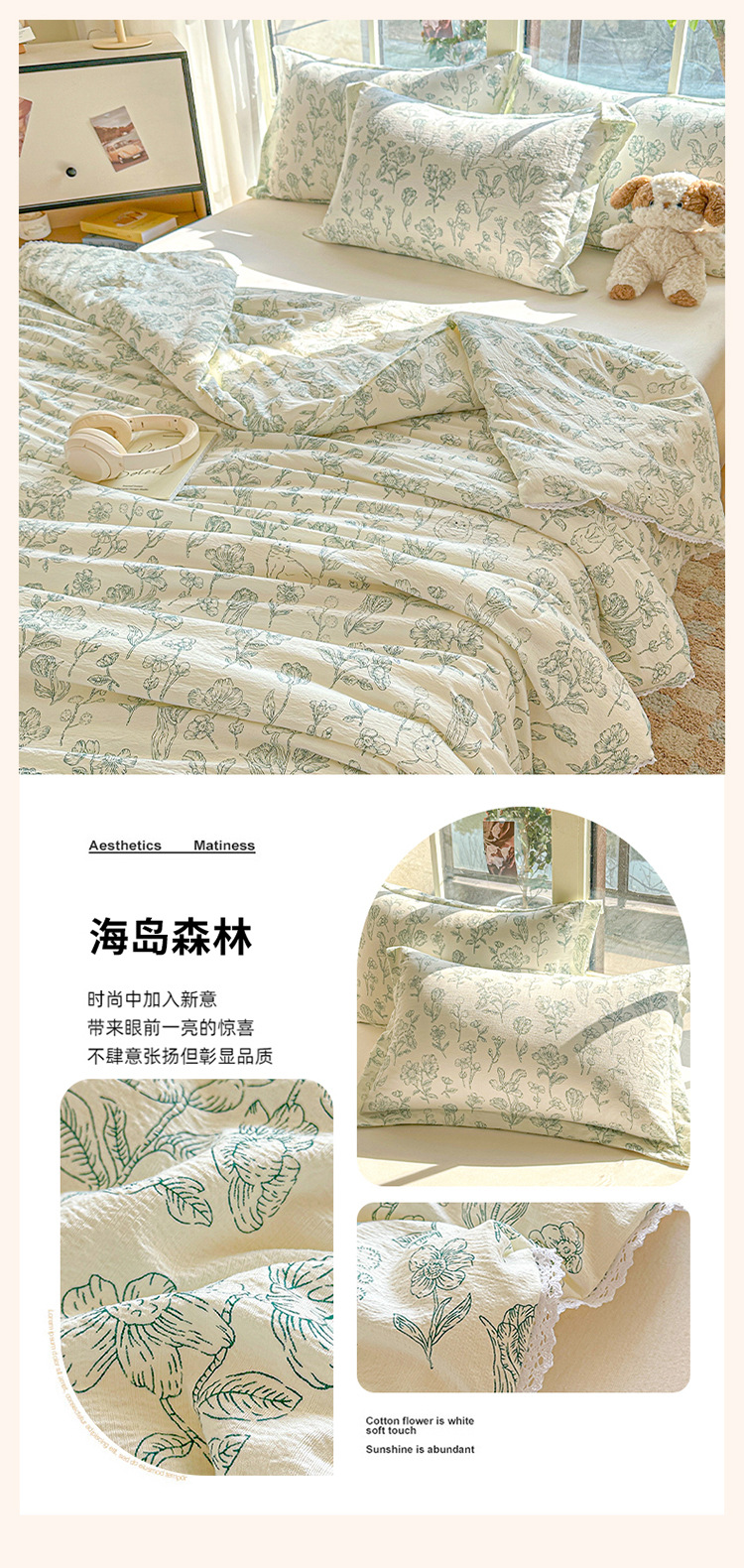 새로운 퀼팅 자카드 워싱 코튼 어린이 여름 이불, 상큼한 프린트 베개 커버, 에어컨 이불, 여름 이불 3종 세트스토어 가기