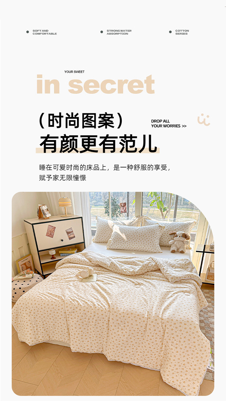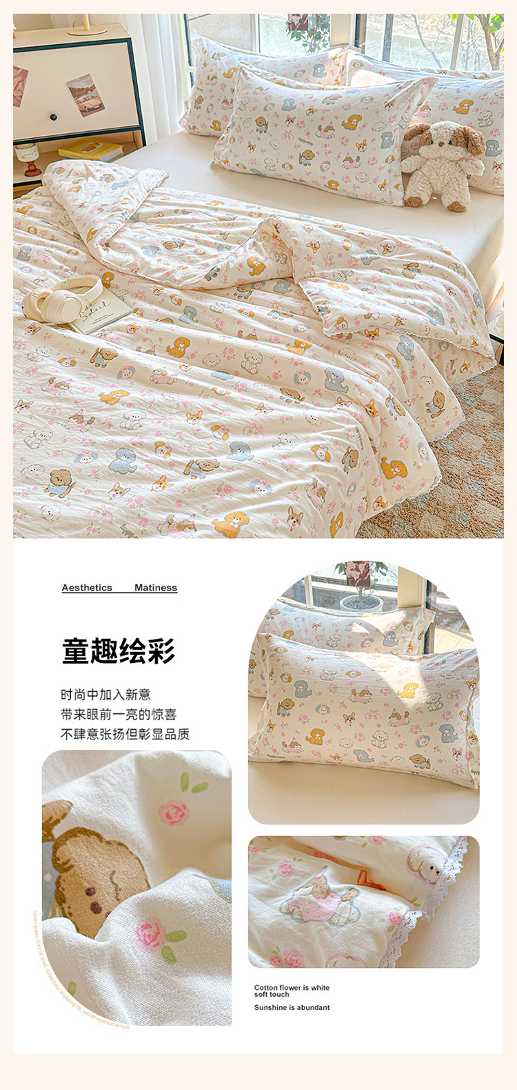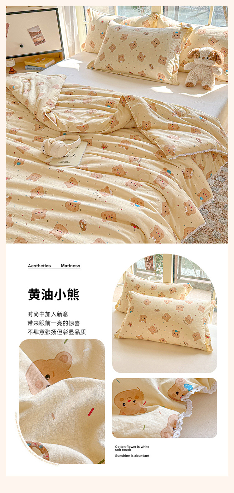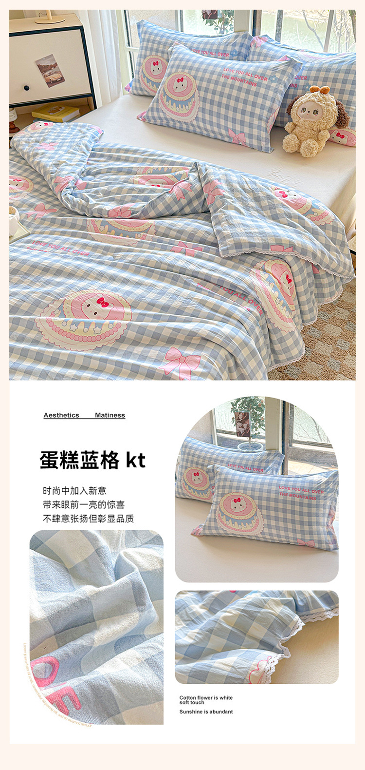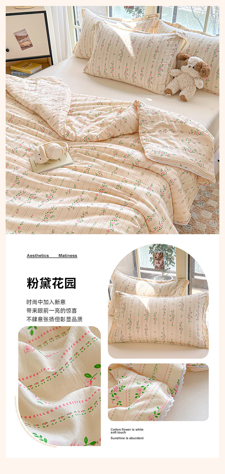 새로운 퀼팅 자카드 워싱 코튼 어린이 여름 이불, 상큼한 프린트 베개 커버, 에어컨 이불, 여름 이불 3종 세트스토어 가기