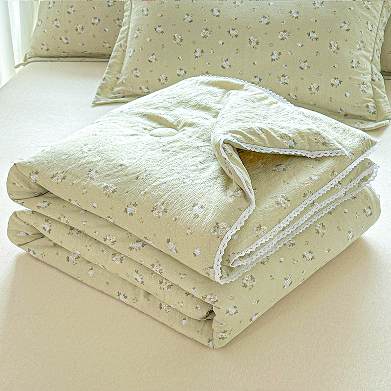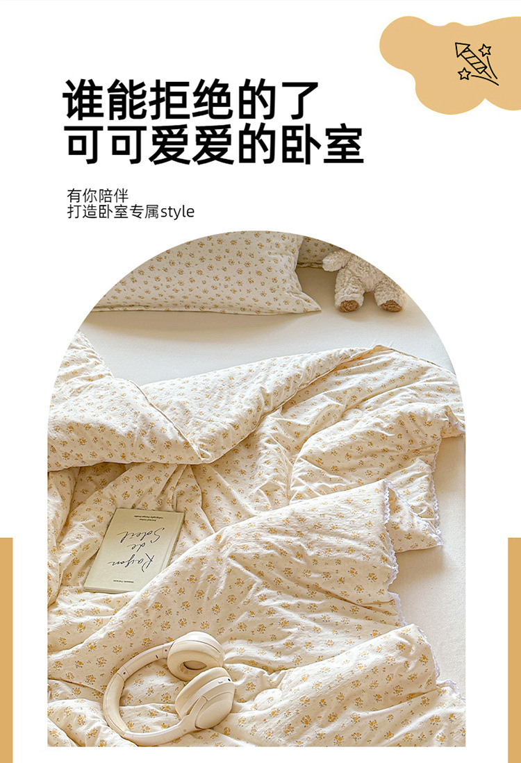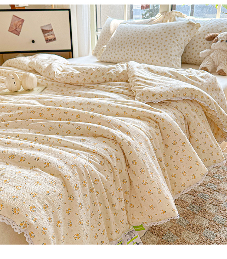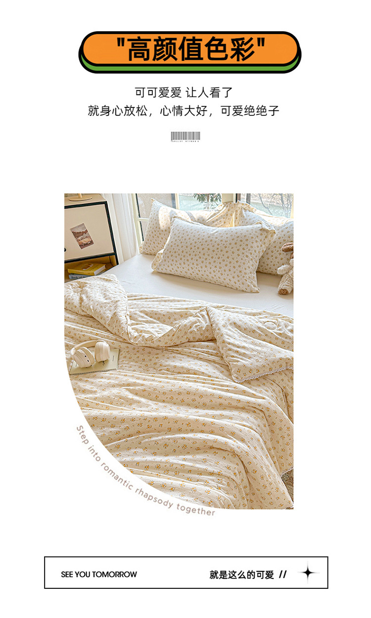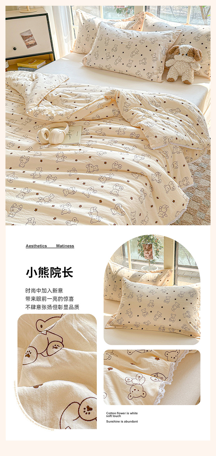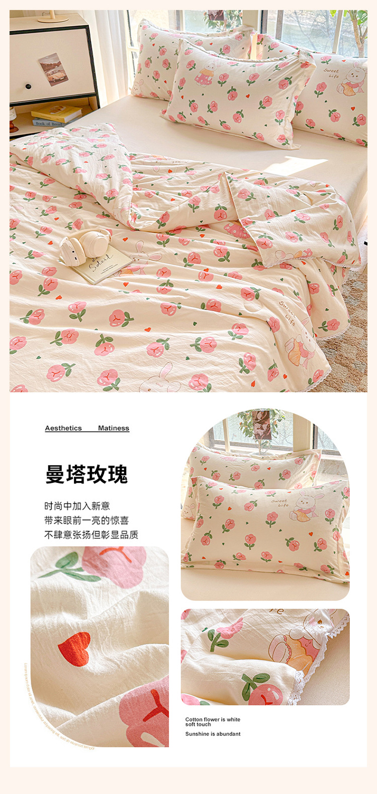 새로운 퀼팅 자카드 워싱 코튼 어린이 여름 이불, 상큼한 프린트 베개 커버, 에어컨 이불, 여름 이불 3종 세트스토어 가기