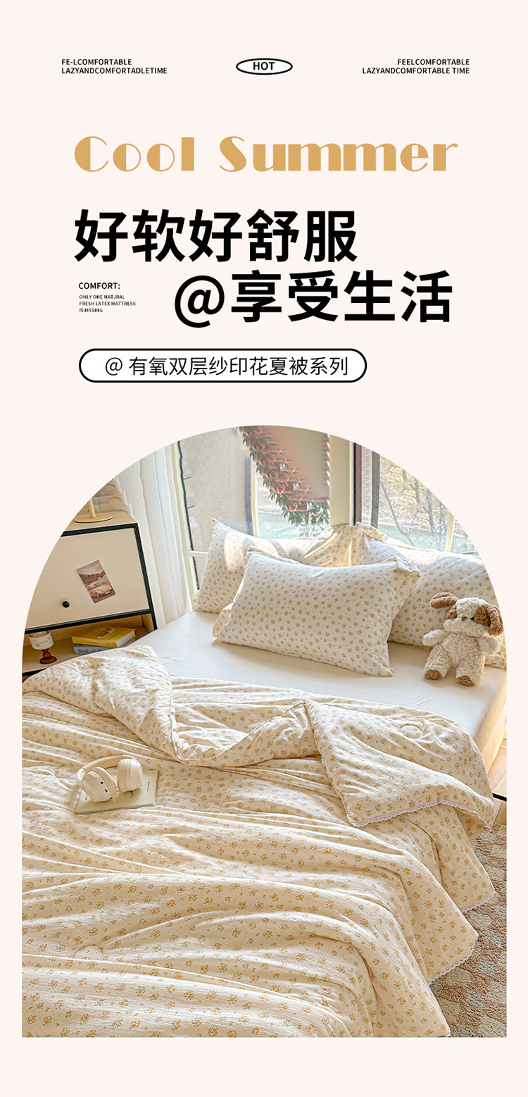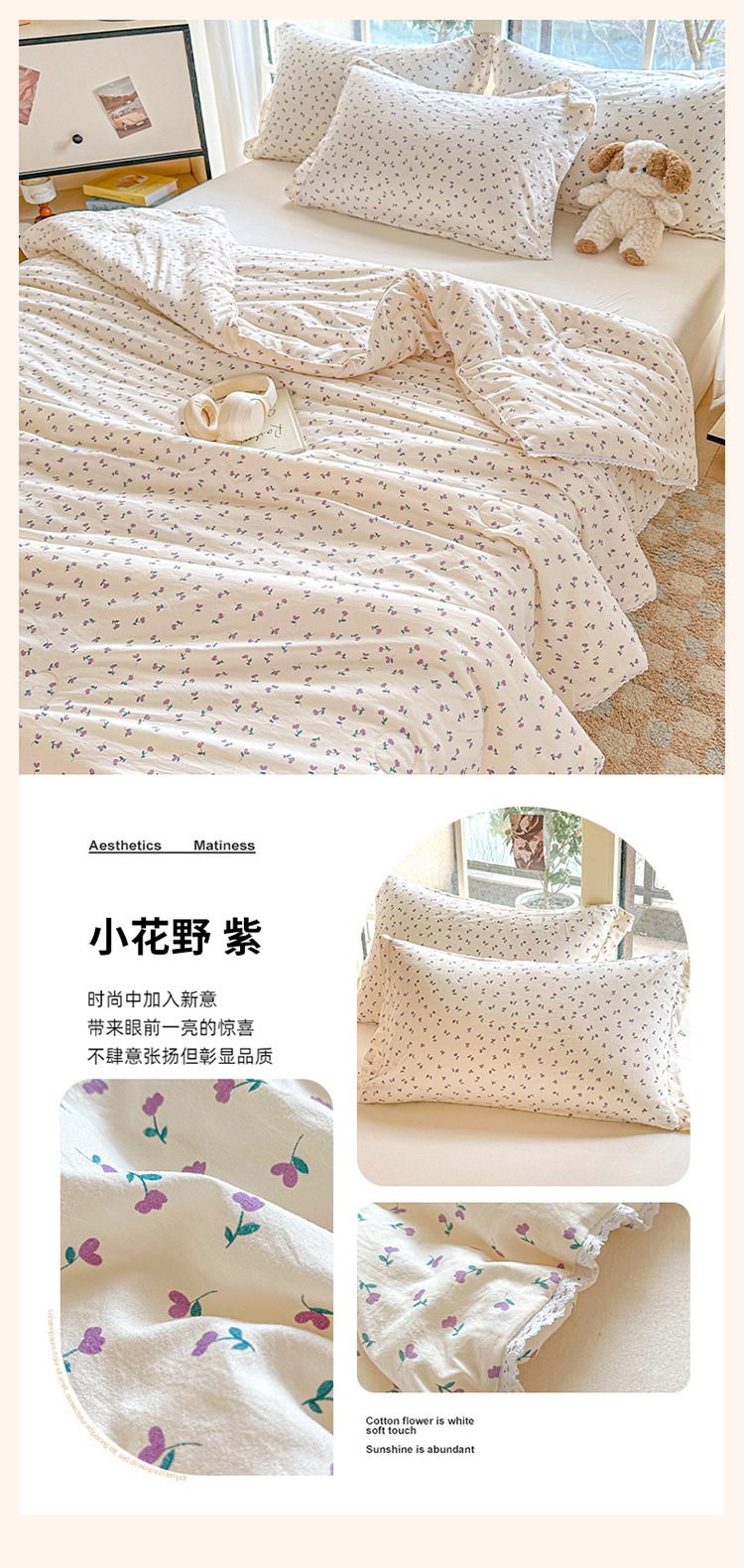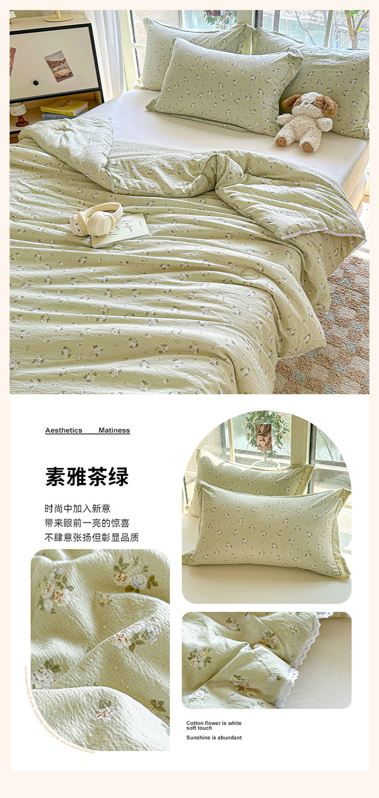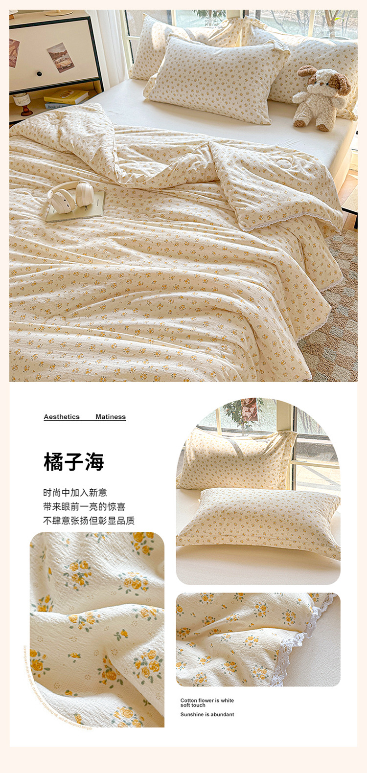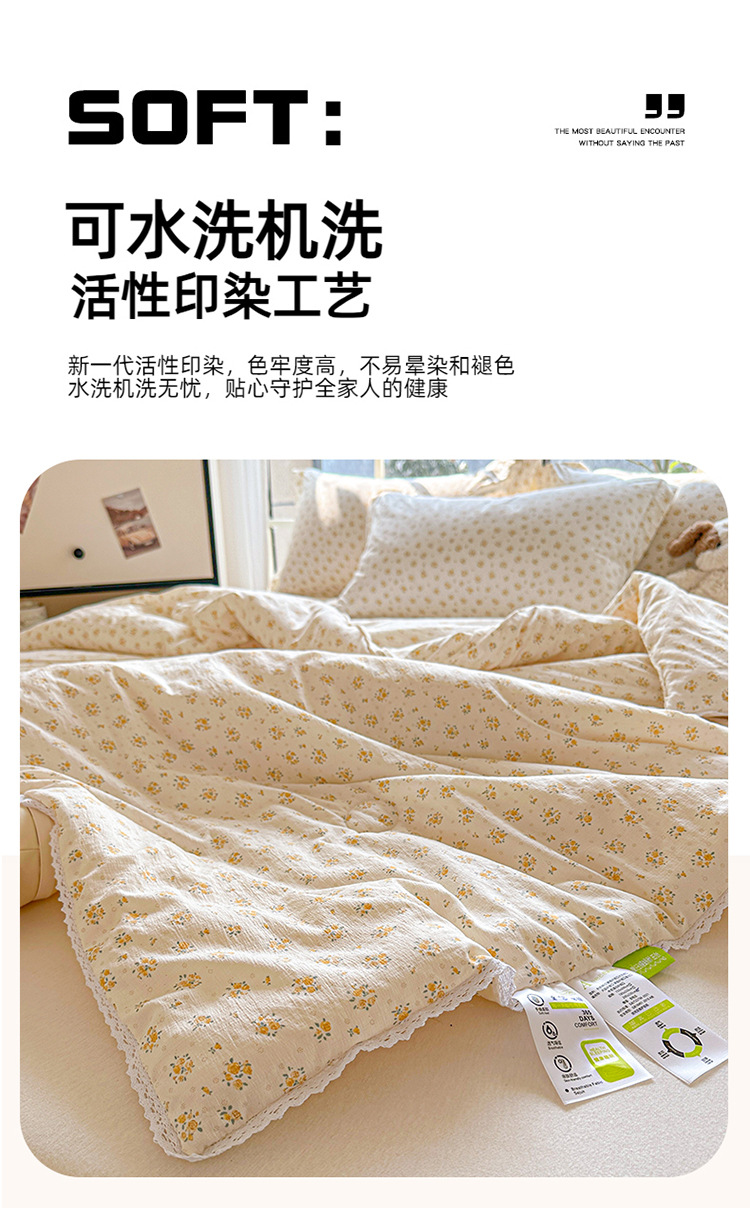 새로운 퀼팅 자카드 워싱 코튼 어린이 여름 이불, 상큼한 프린트 베개 커버, 에어컨 이불, 여름 이불 3종 세트스토어 가기