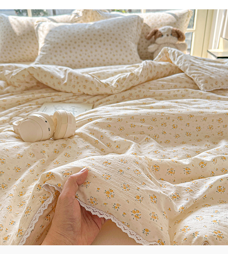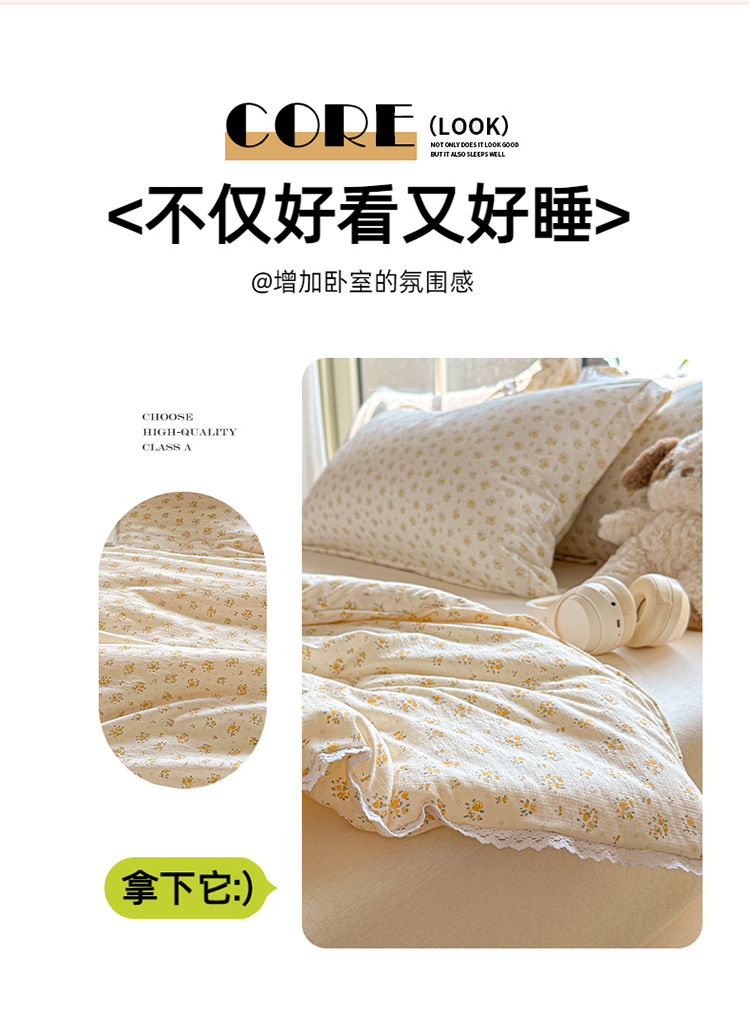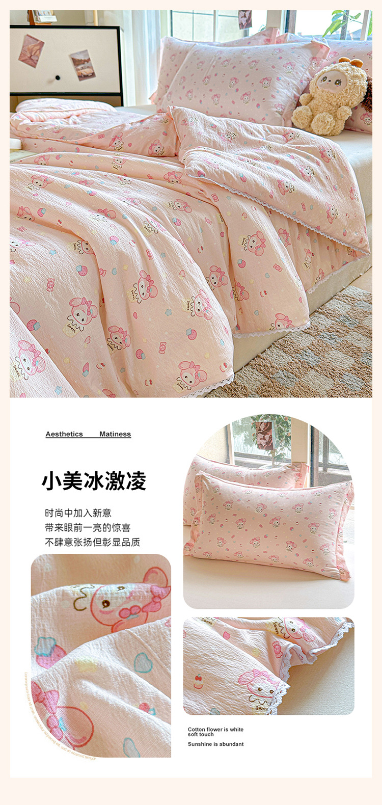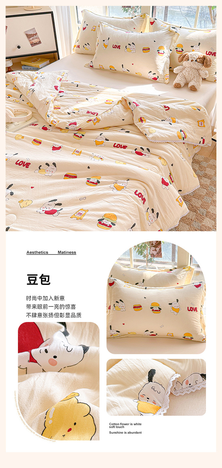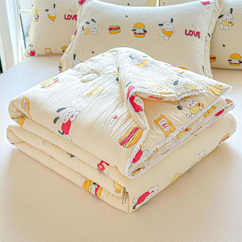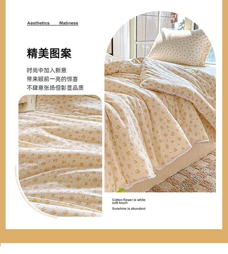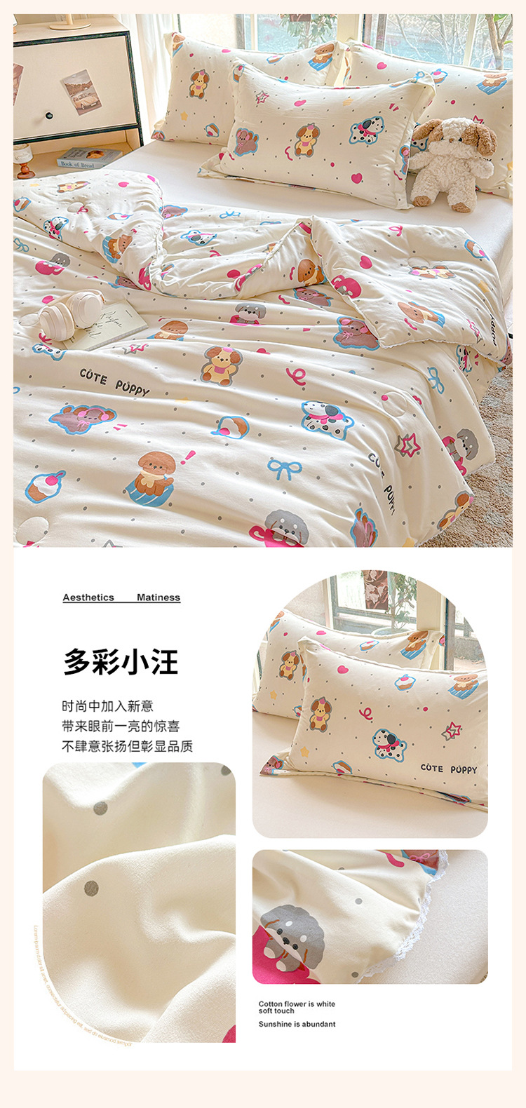 새로운 퀼팅 자카드 워싱 코튼 어린이 여름 이불, 상큼한 프린트 베개 커버, 에어컨 이불, 여름 이불 3종 세트스토어 가기