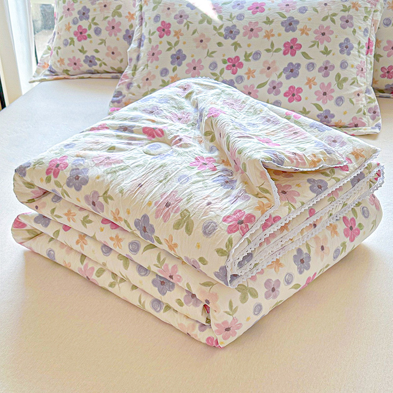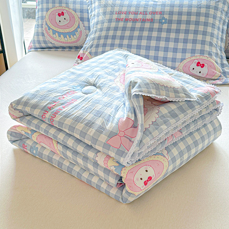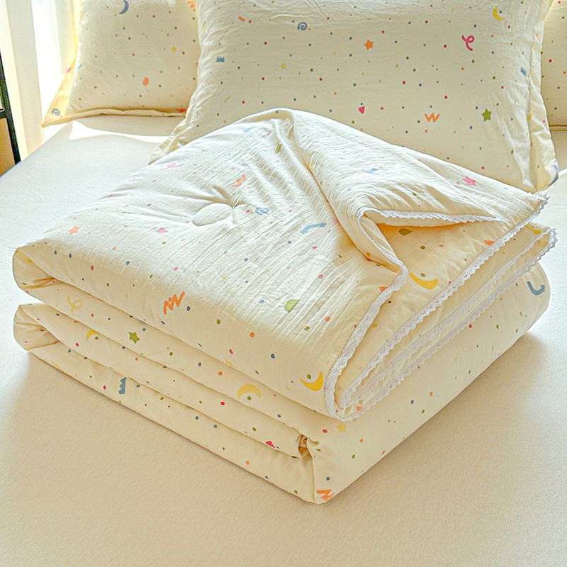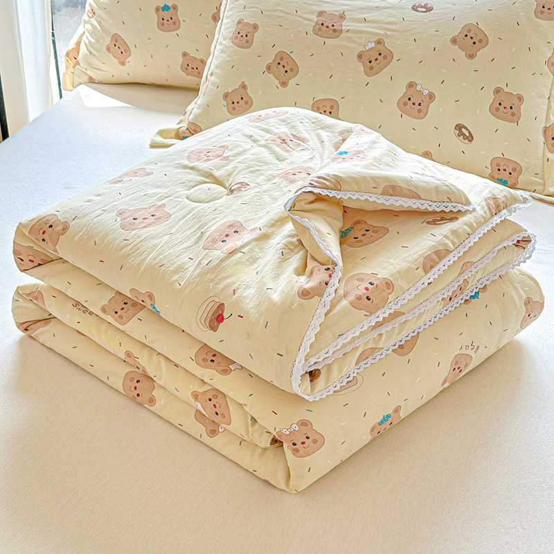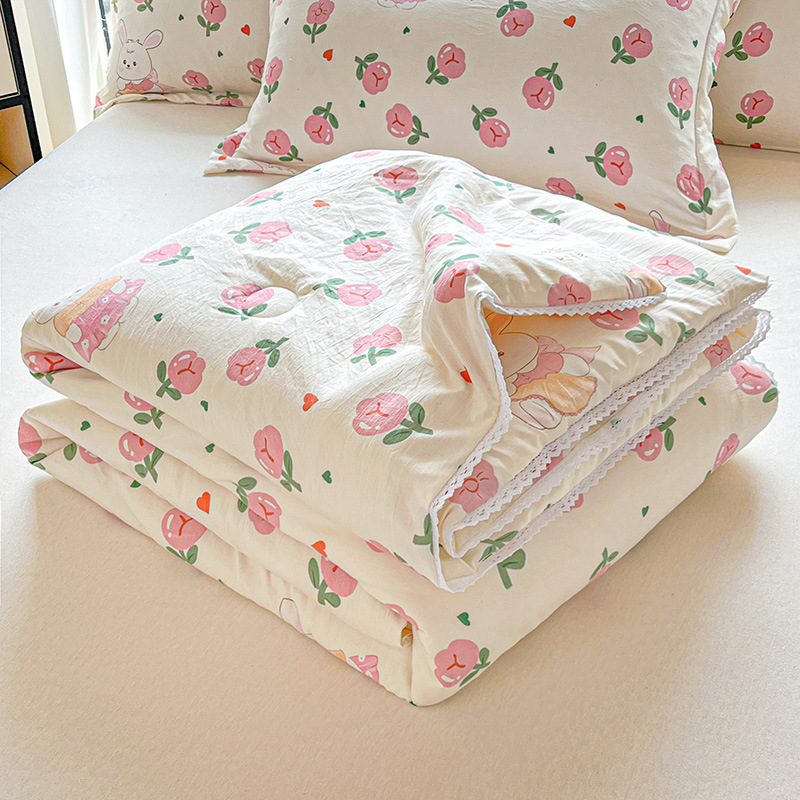 새로운 퀼팅 자카드 워싱 코튼 어린이 여름 이불, 상큼한 프린트 베개 커버, 에어컨 이불, 여름 이불 3종 세트