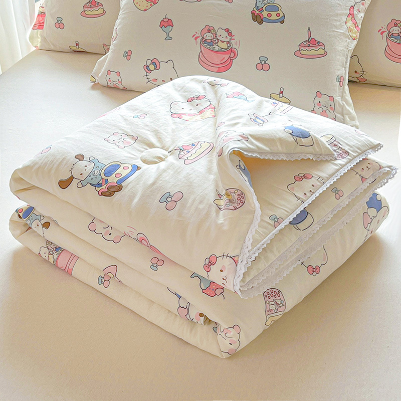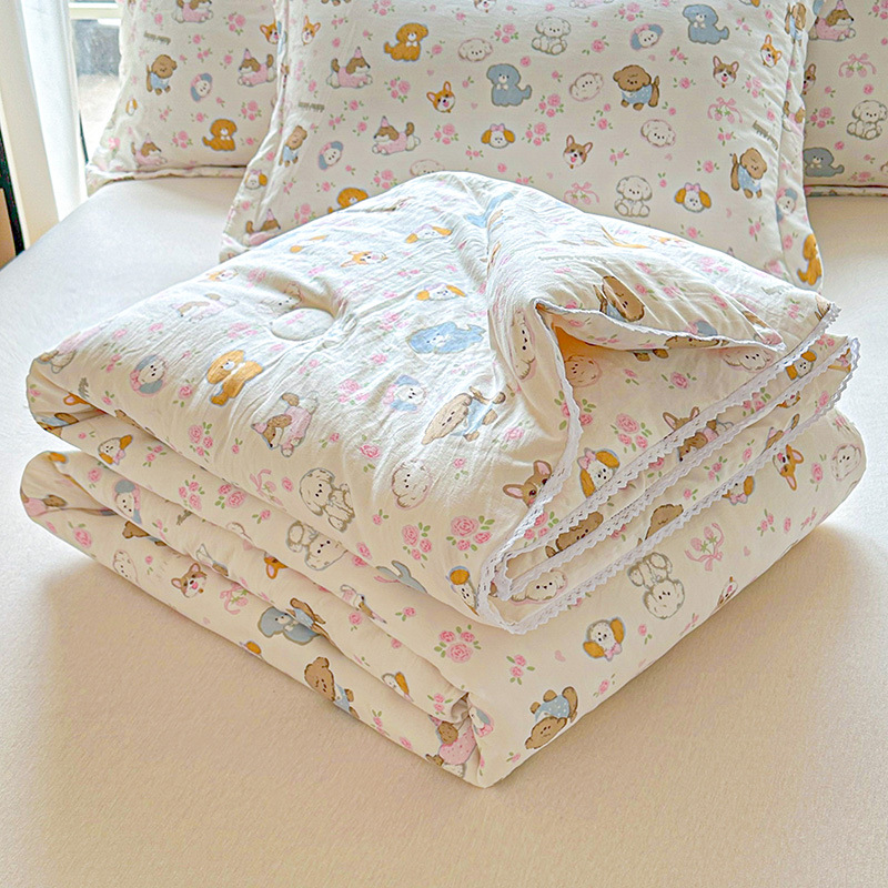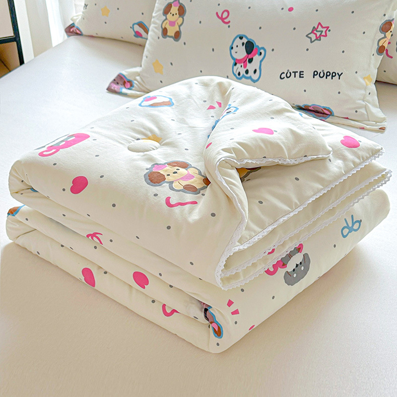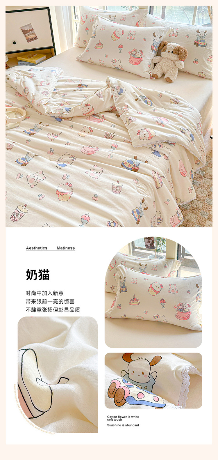 새로운 퀼팅 자카드 워싱 코튼 어린이 여름 이불, 상큼한 프린트 베개 커버, 에어컨 이불, 여름 이불 3종 세트