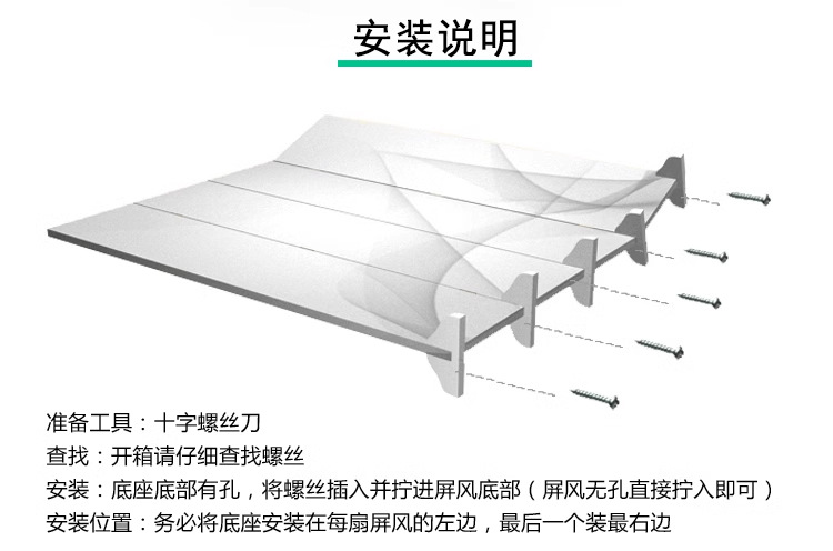 • 3개의 침투 방지 팬: 길이 1.2m * 높이 1.8m (베이스 + 도르래 포함)
