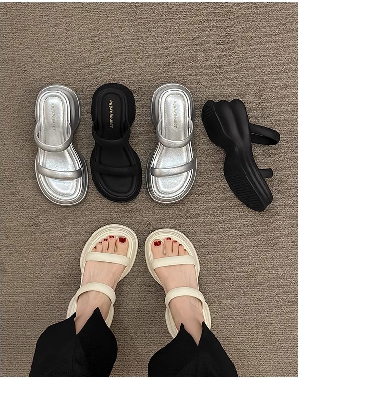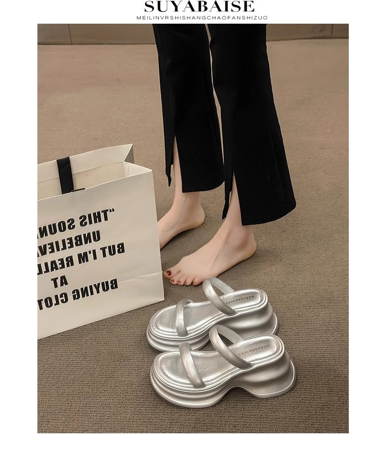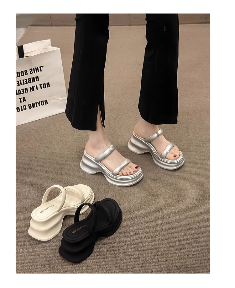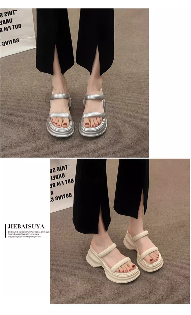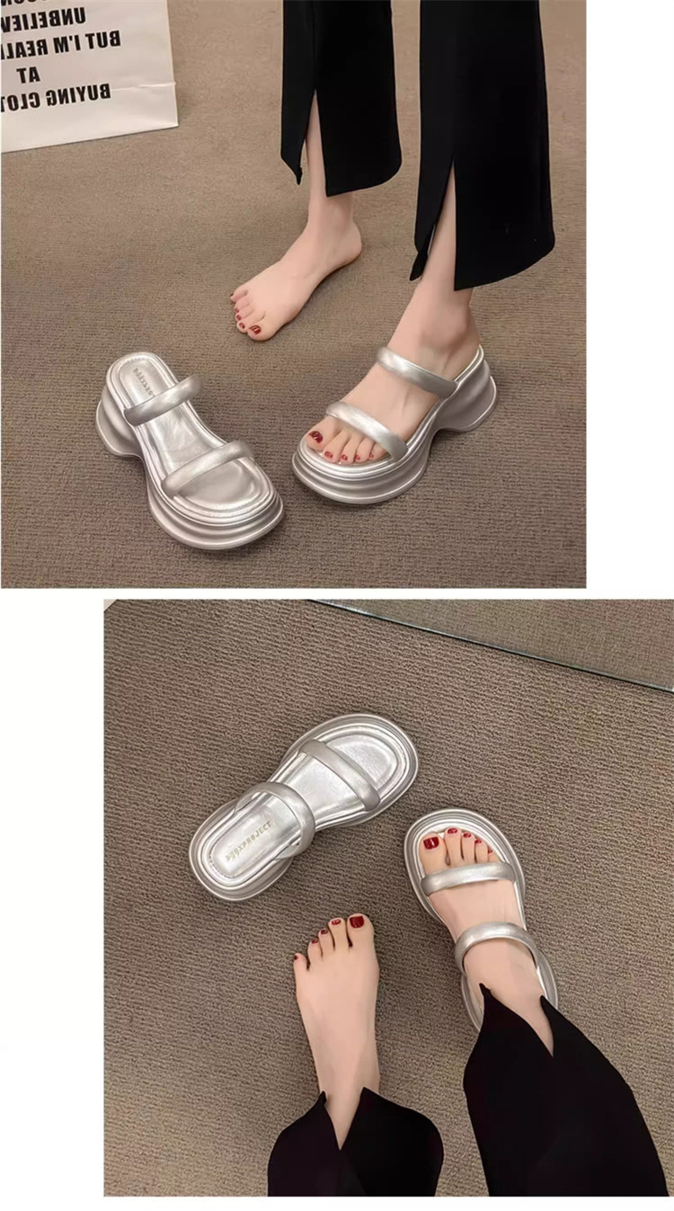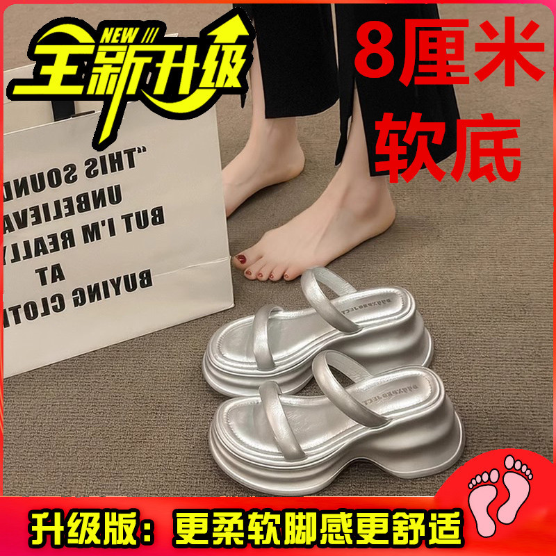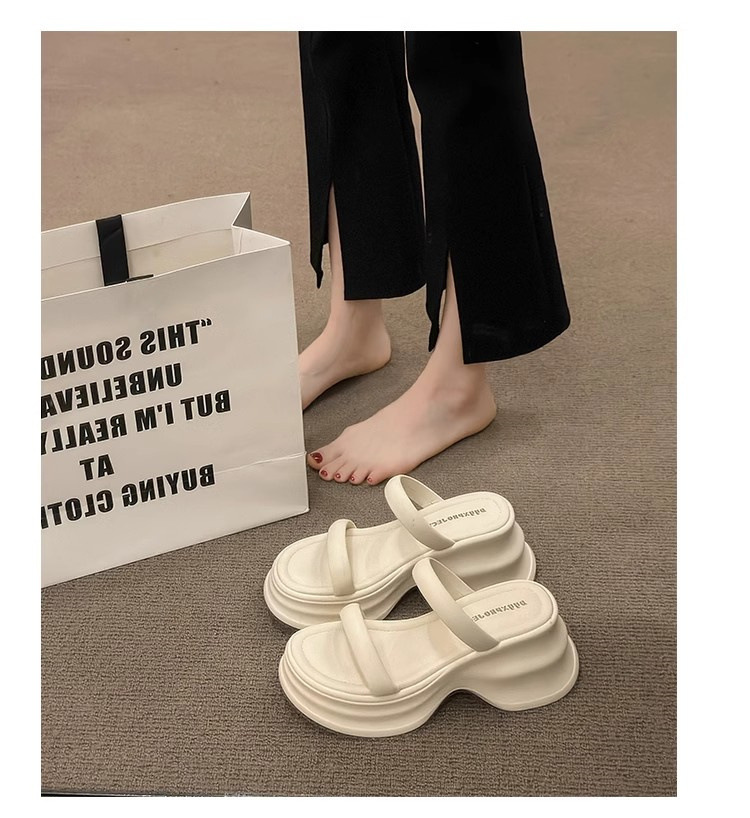 하이힐 슬리퍼 여성용 여름 아우터웨어 2025 새로운 여름 하이 엔드 센스 작은 두꺼운 바닥 비치 슬리퍼스토어 가기