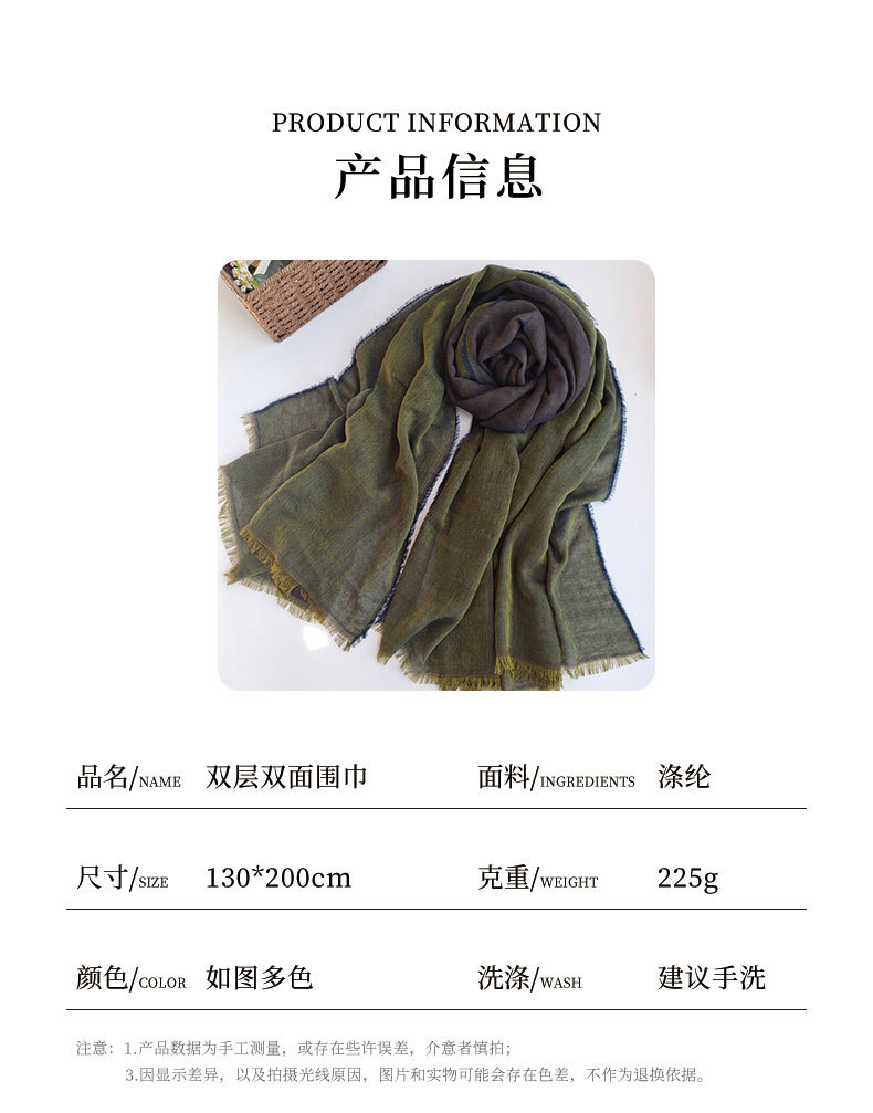 재고 원사 염색 양면 단색 스카프 슈퍼 대형 슈퍼 와이드 컬러 매칭 봄과 가을 남성과 여성을위한 스카프