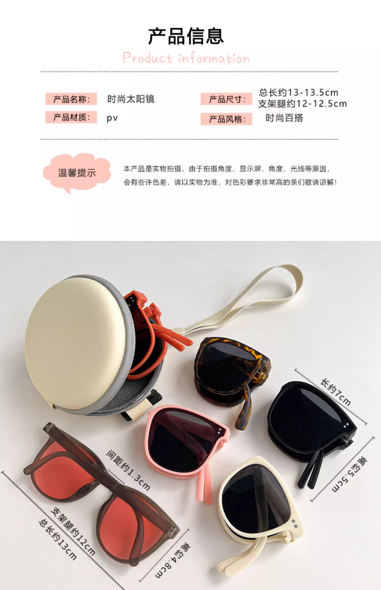 • 접이식 선글라스 케이스 - 베이지 심플 버전 - 1개
