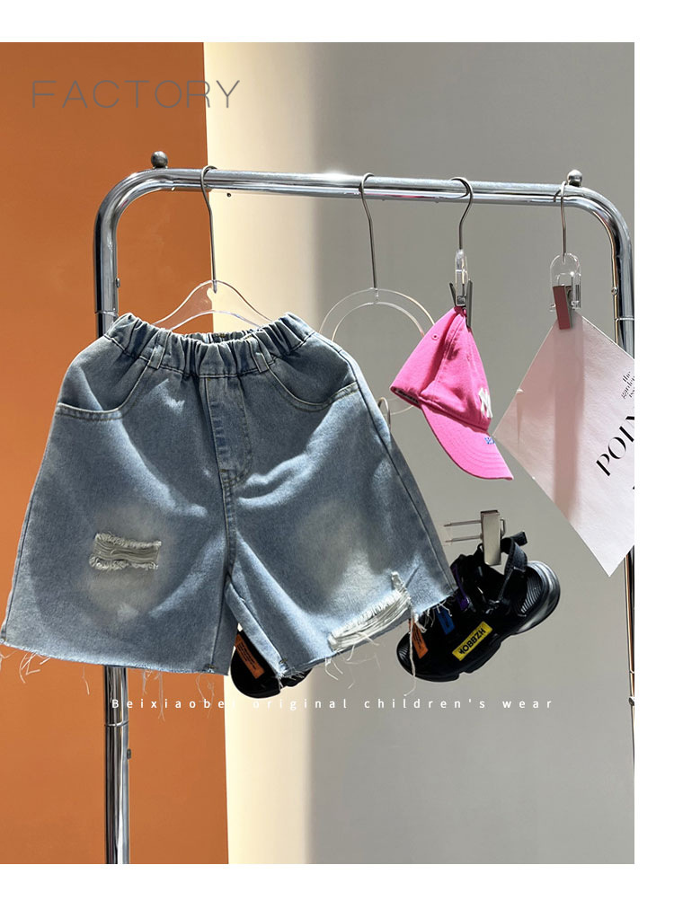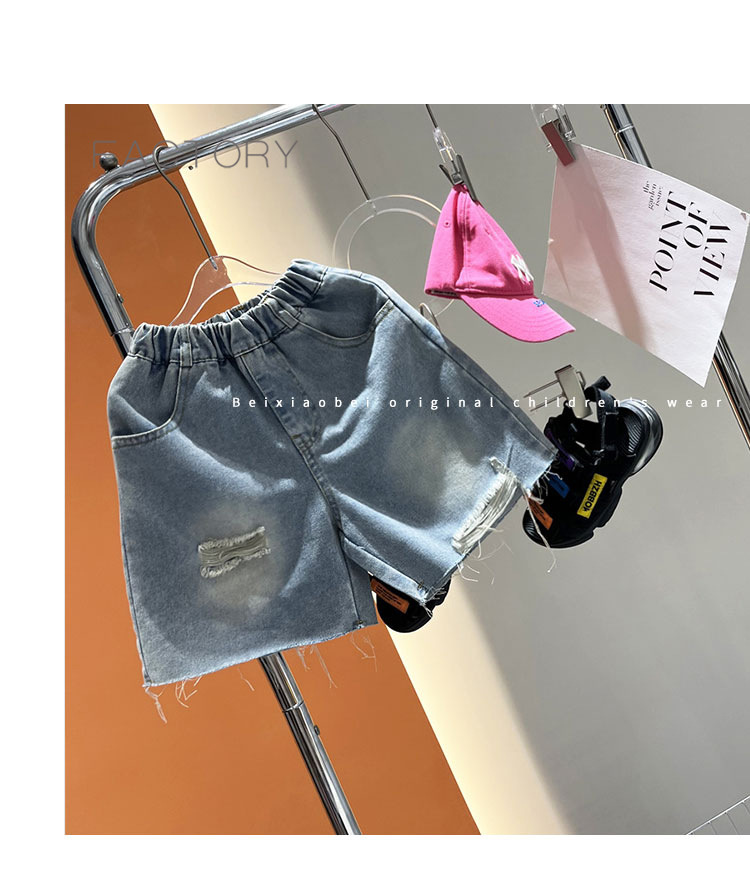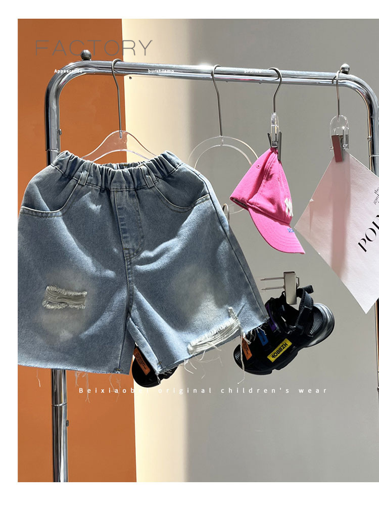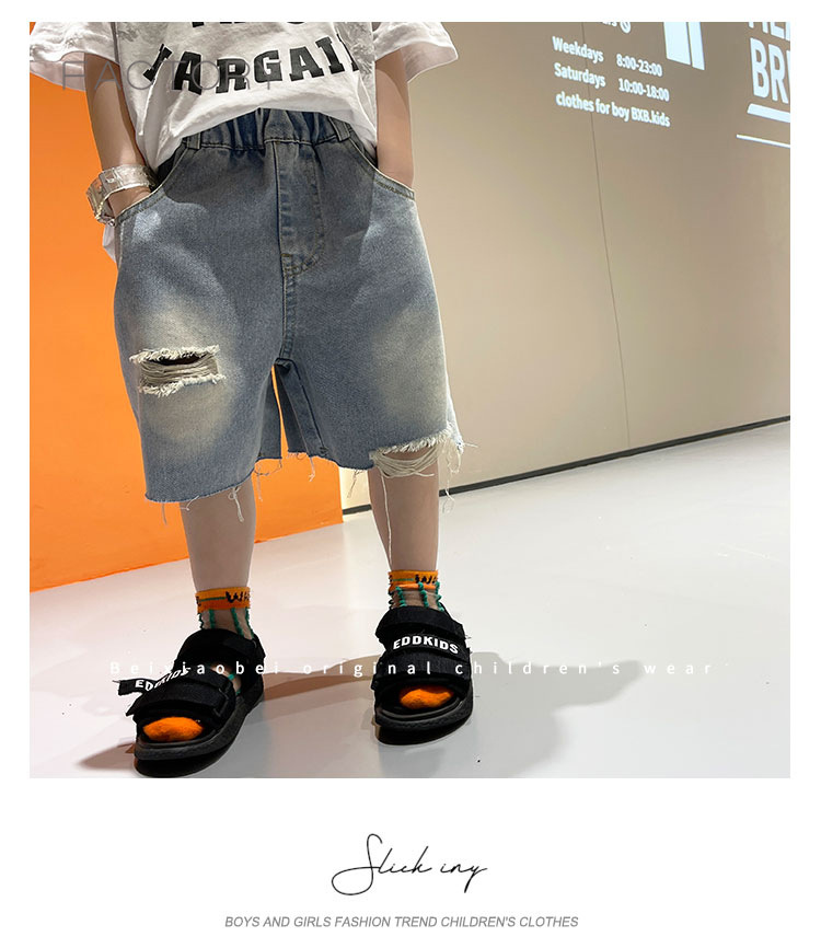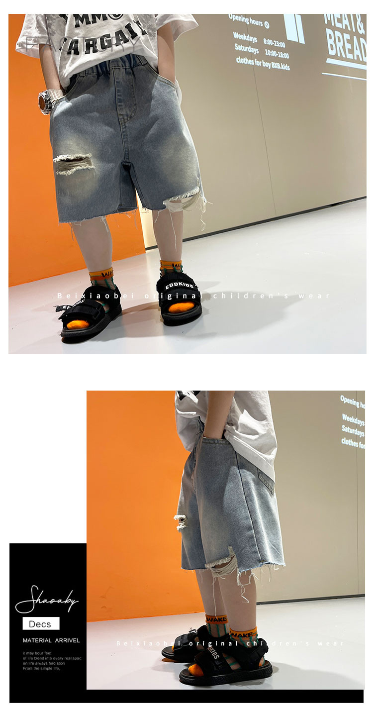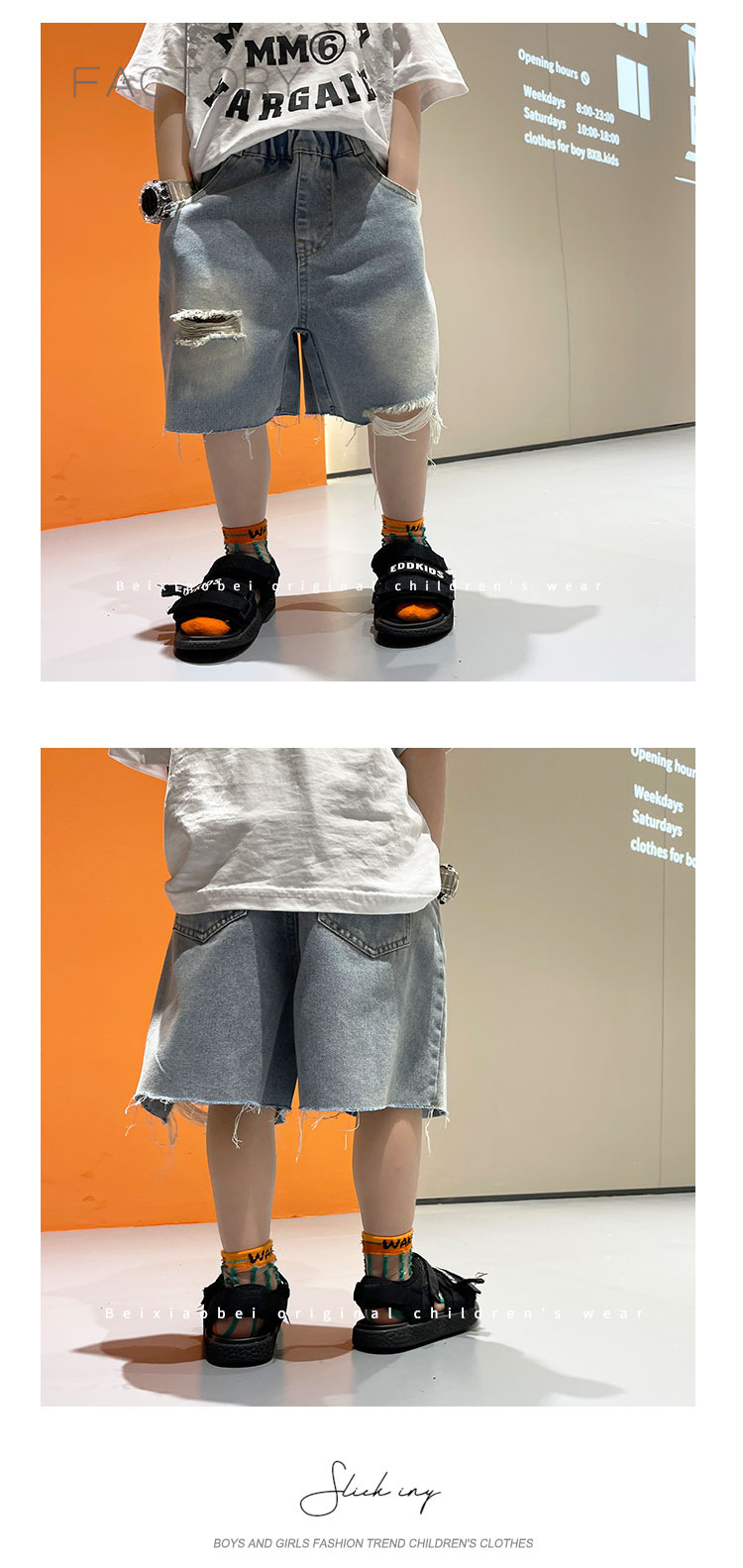 남아 데님 반바지 여름 스타일 2026 신상 트렌디 아동용 얇은 데미지 5부 바지 유아 패셔너블 중간 길이 바지스토어 가기