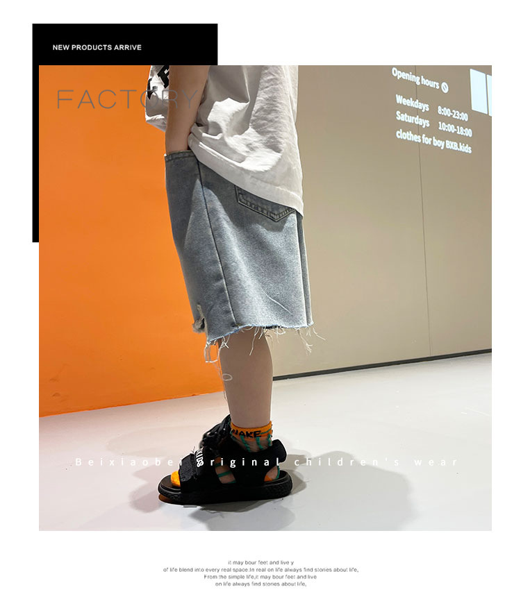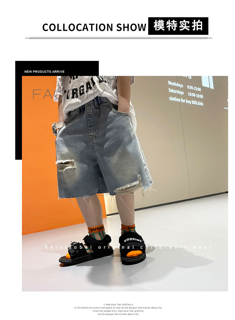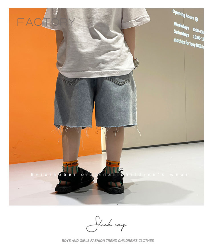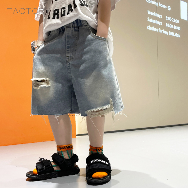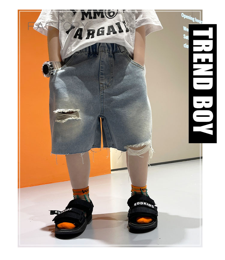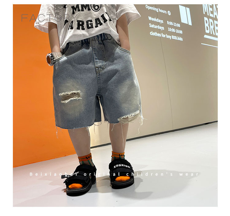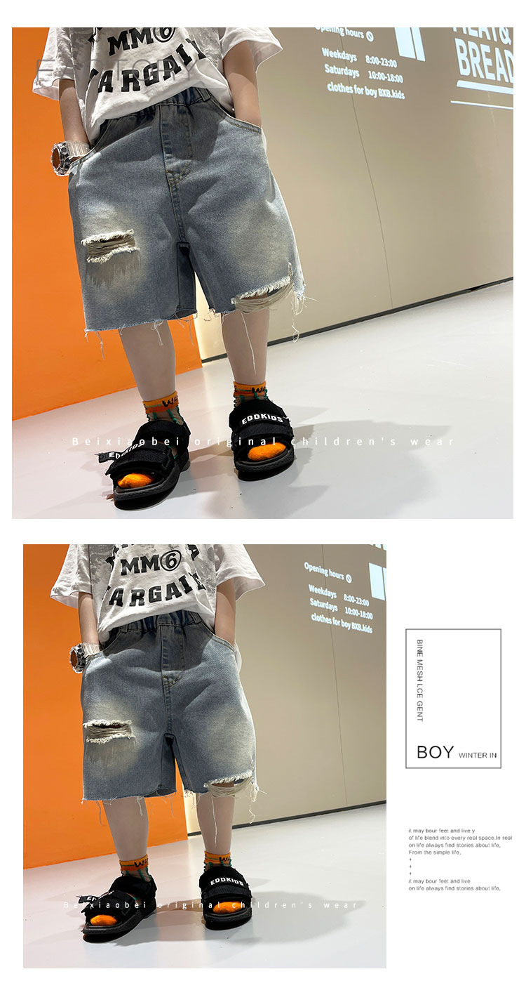 남아 데님 반바지 여름 스타일 2026 신상 트렌디 아동용 얇은 데미지 5부 바지 유아 패셔너블 중간 길이 바지스토어 가기