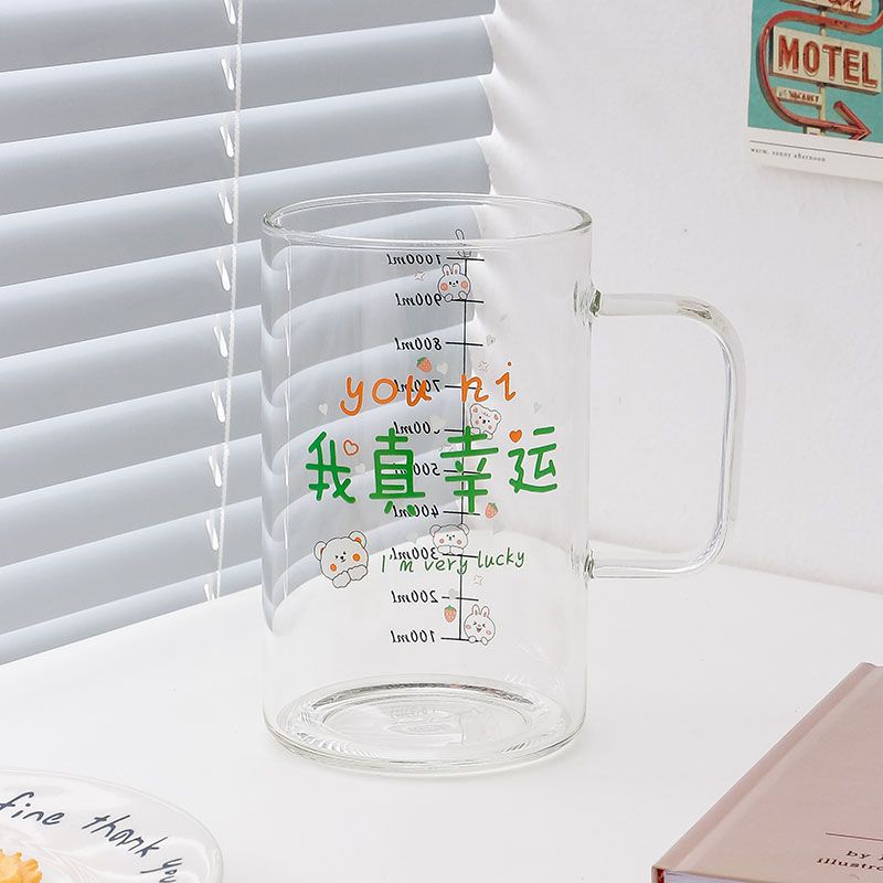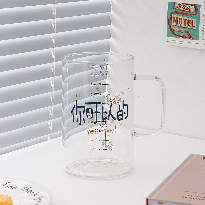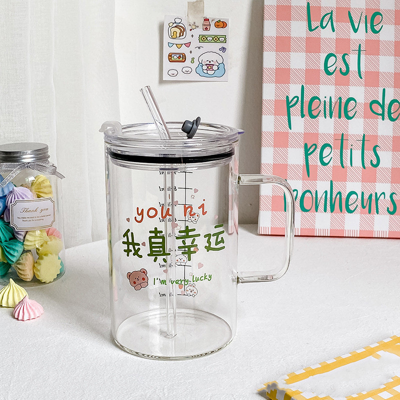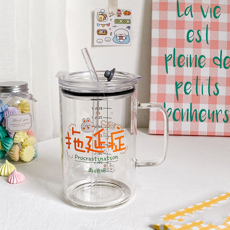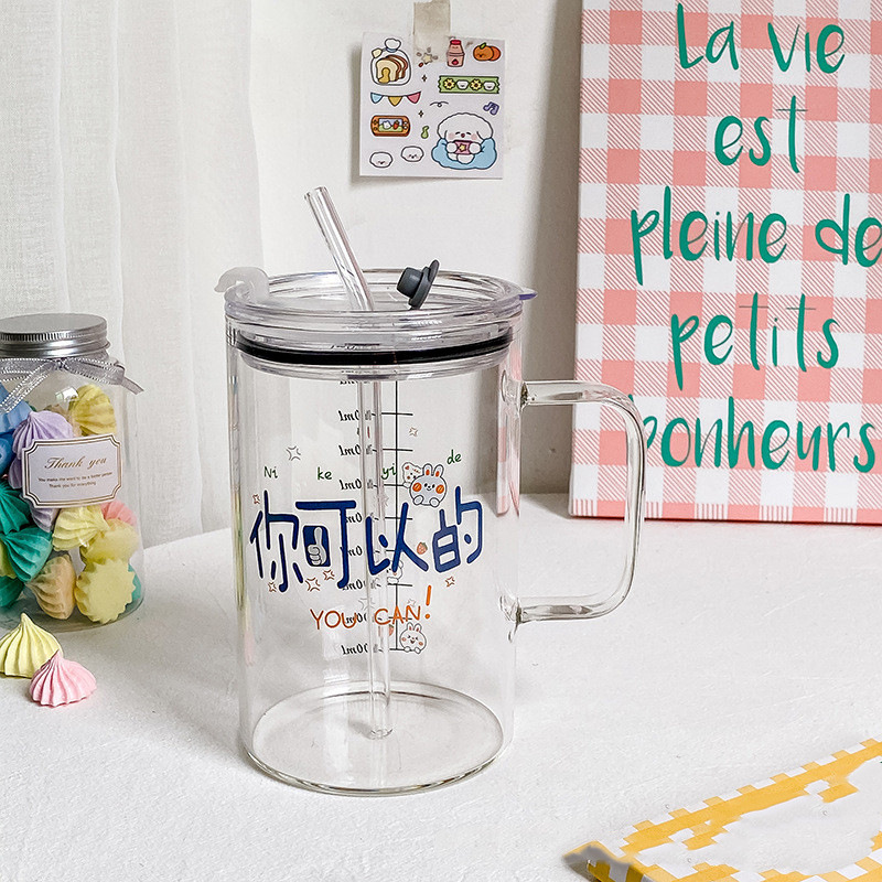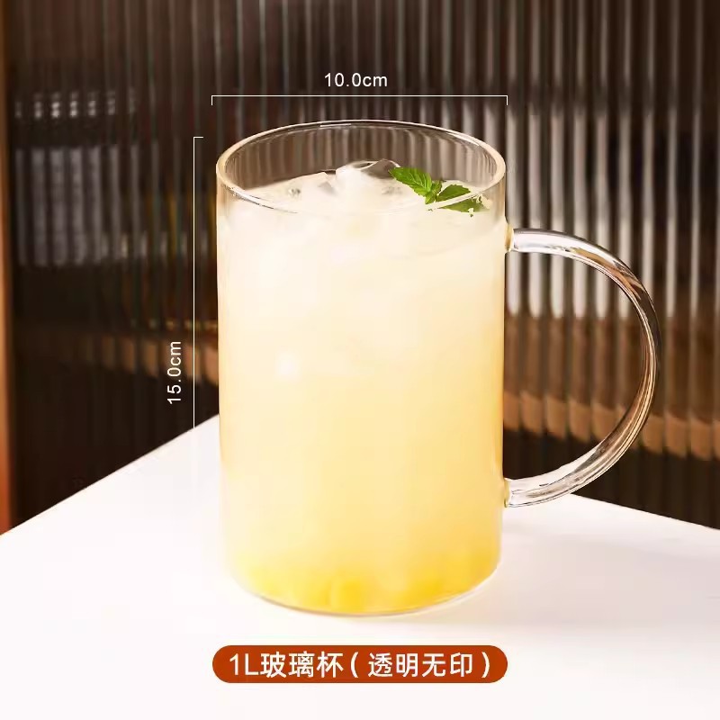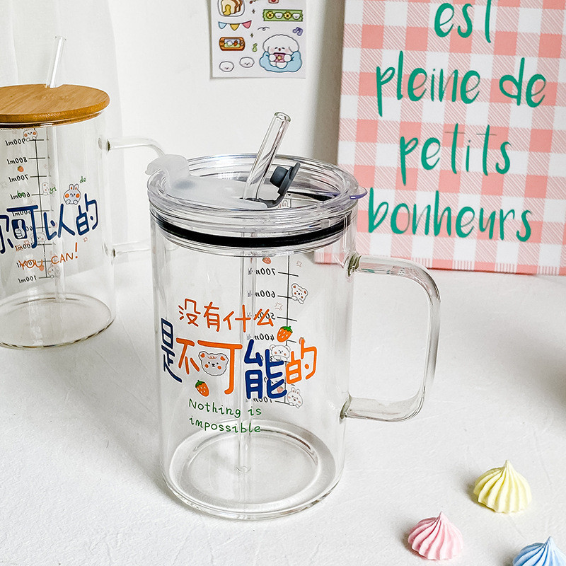 마시는 컵 대용량 1000ml 뚜껑과 빨대가있는 고 붕규산 유리 컵 고온 방지 사무실 차 컵스토어 가기