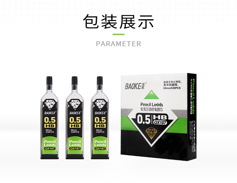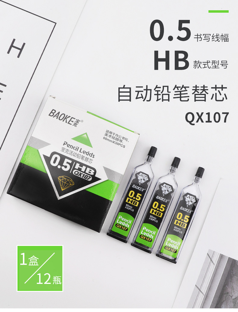 Baoke 자동 연필심 학습 HB0.5mm 시험 연필 특수 연필심 카드 펜 자동 연필심 QX107