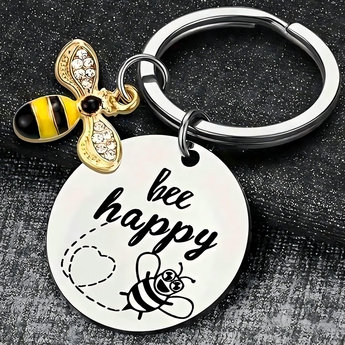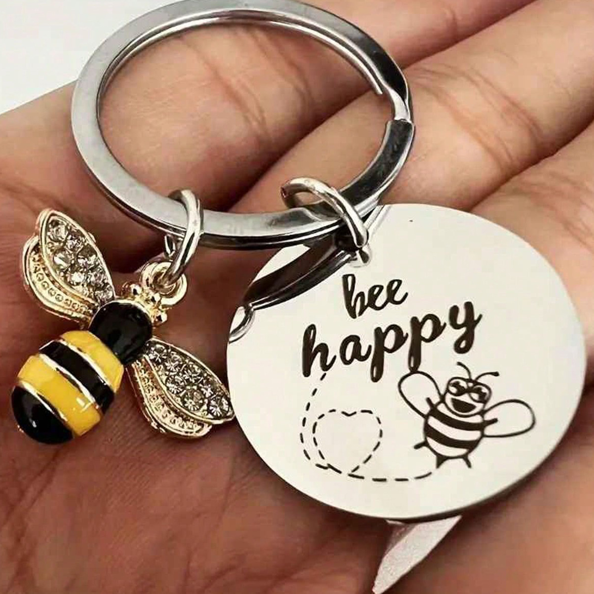 아마존 새로운 스테인레스 스틸 꿀벌 해피 크로스 보더 비 키 체인 액세서리 선물 키 체인 조각스토어 가기