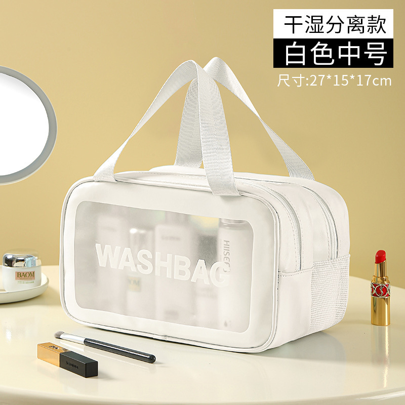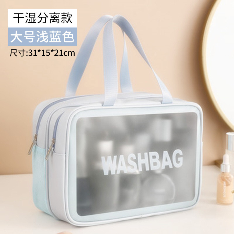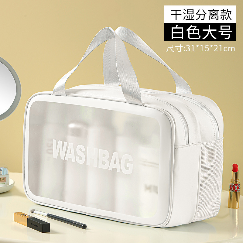 휴대용 대용량 화장품 가방 방수 휴대용 수영 저장 가방 투명한 PU 젖빛 건조 및 젖은 분리 세척 가방