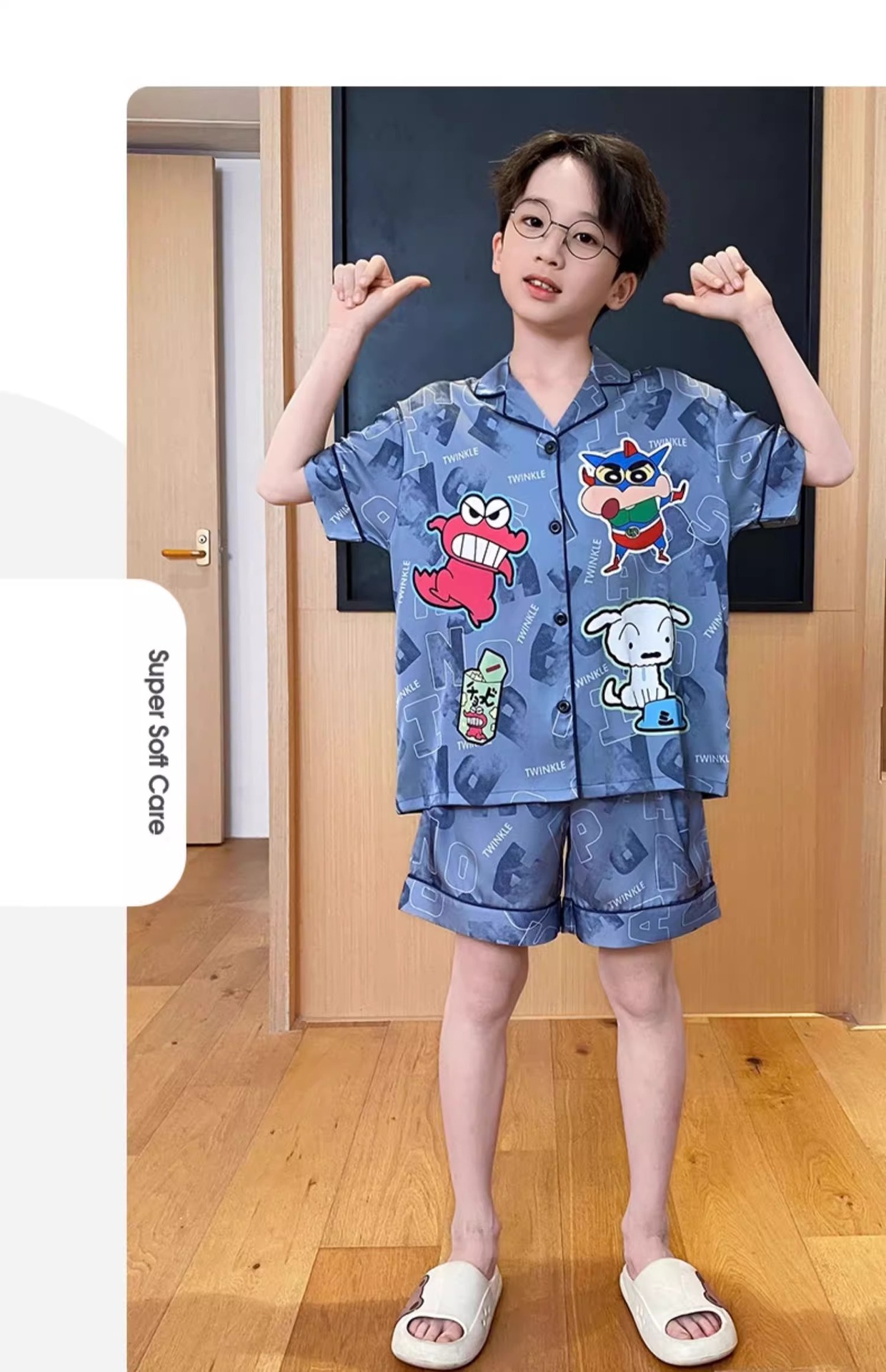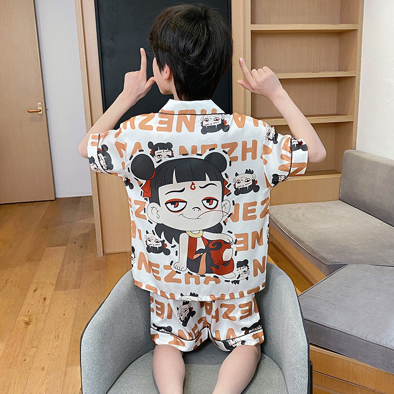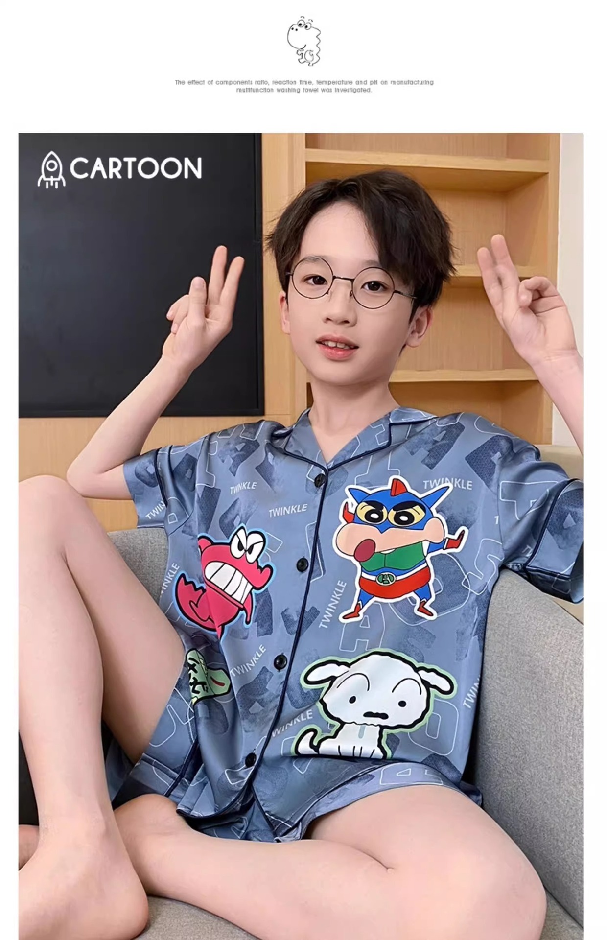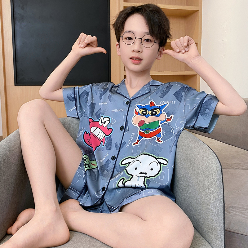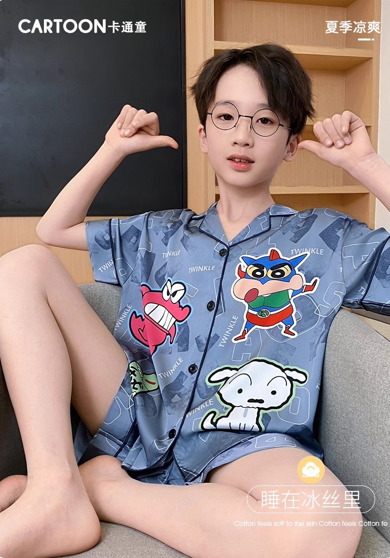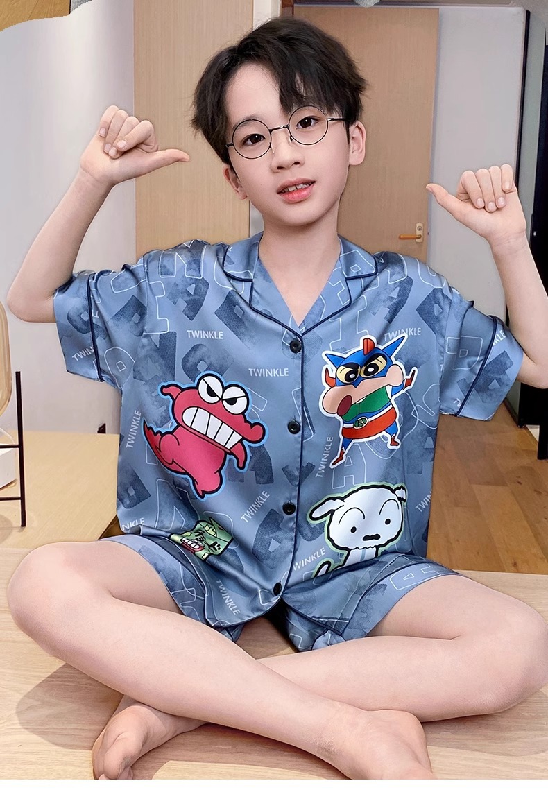 소년 잠옷 어린이 여름 얼음 실크 여름 정장 청소년 및 어린이 2025 새로운 만화 소년 가정 옷스토어 가기