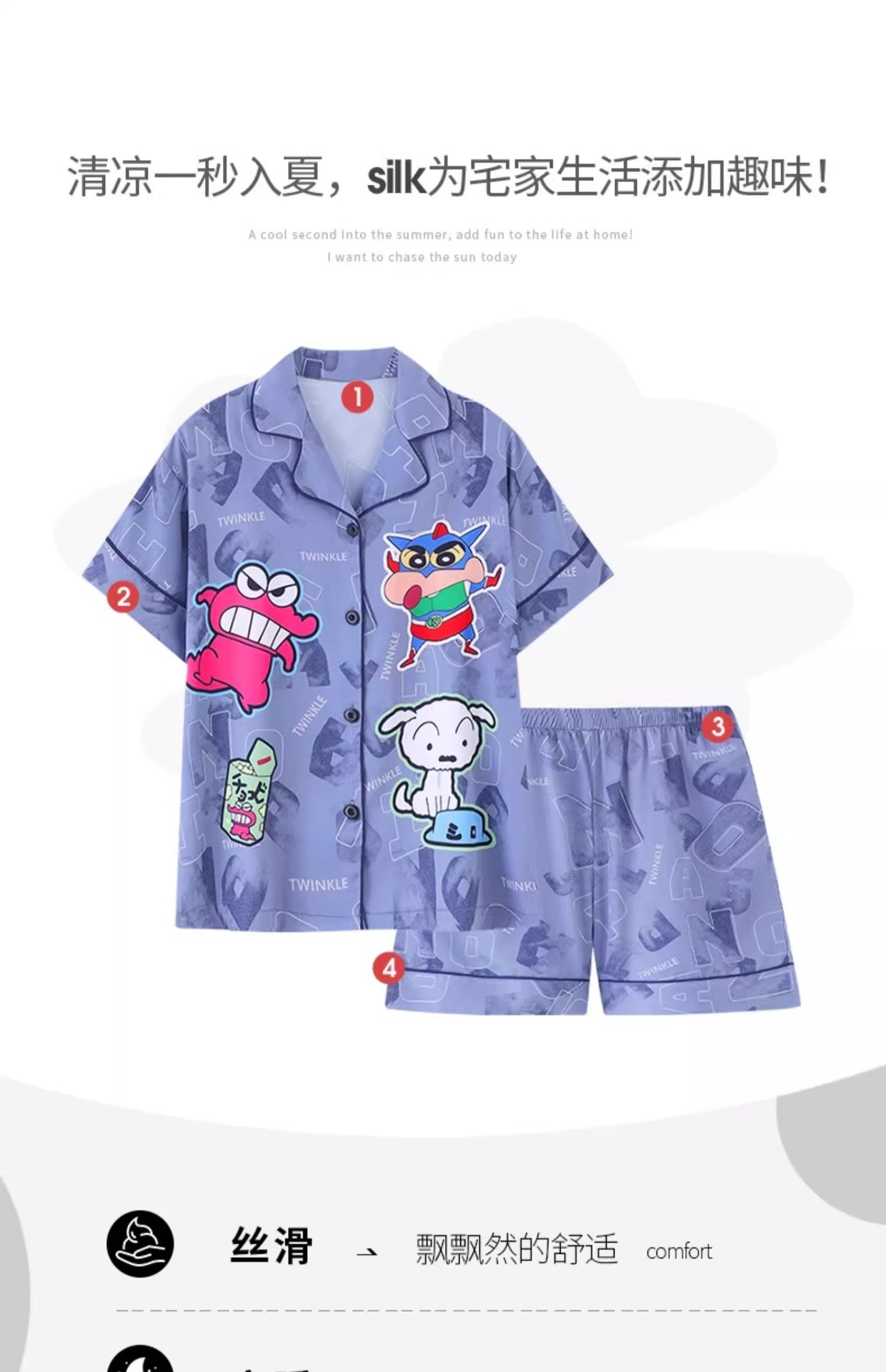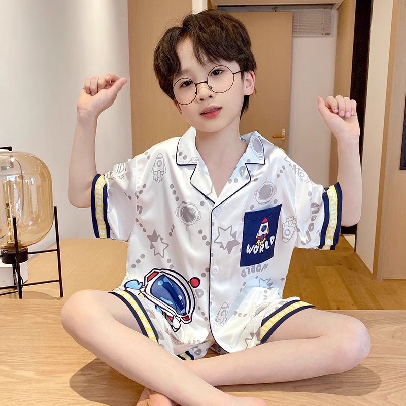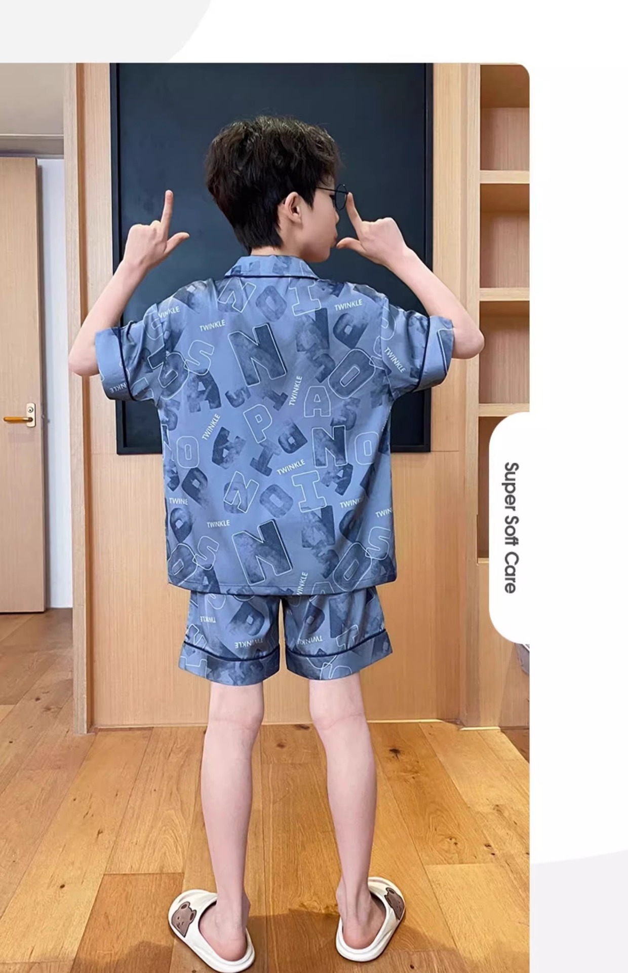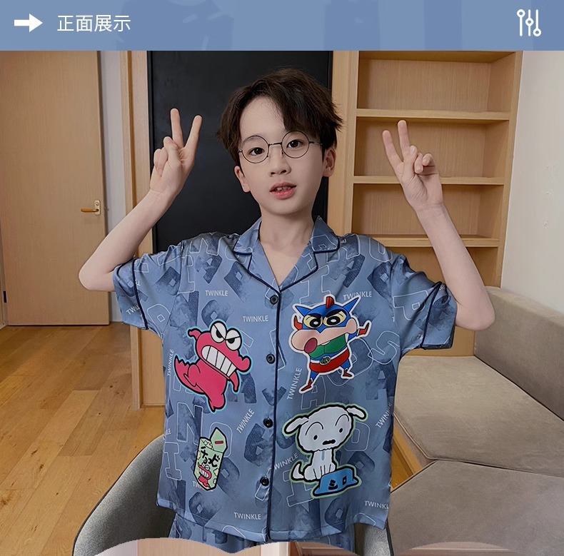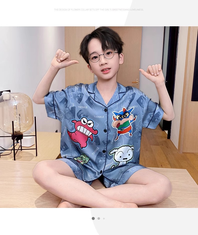 소년 잠옷 어린이 여름 얼음 실크 여름 정장 청소년 및 어린이 2025 새로운 만화 소년 가정 옷스토어 가기