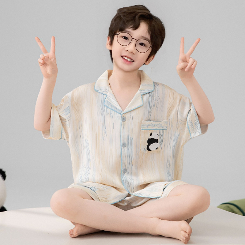 소년 잠옷 어린이 여름 얼음 실크 여름 정장 청소년 및 어린이 2025 새로운 만화 소년 가정 옷