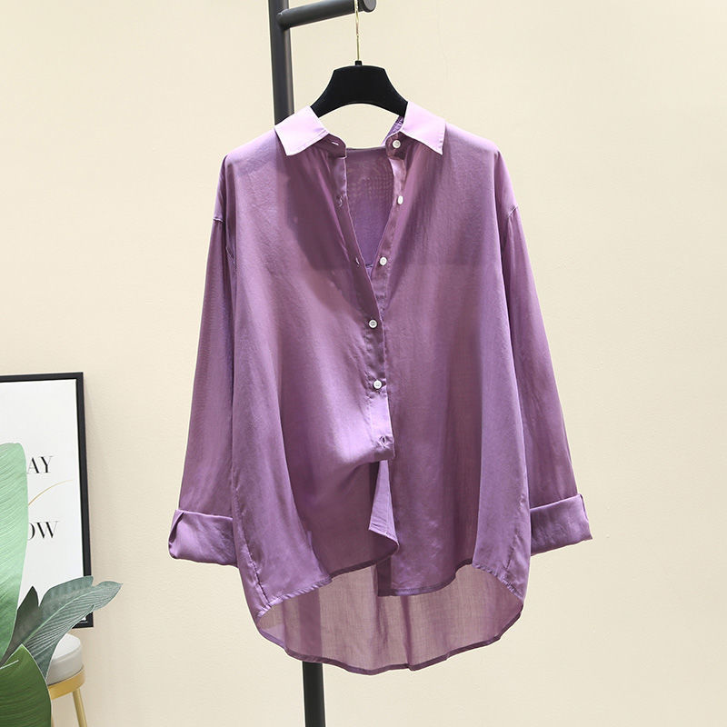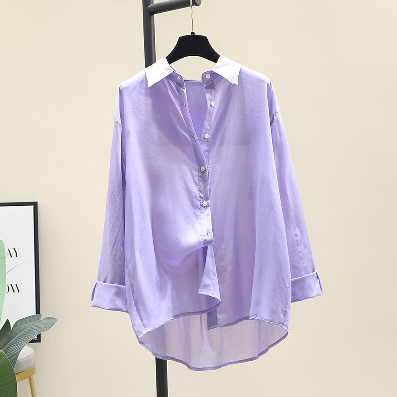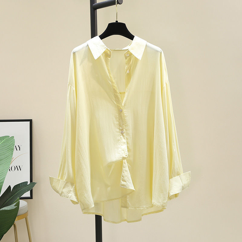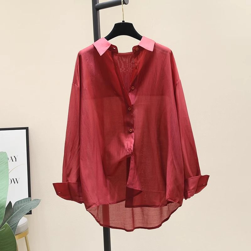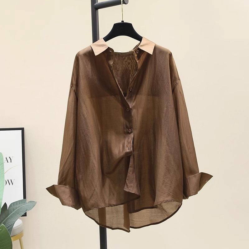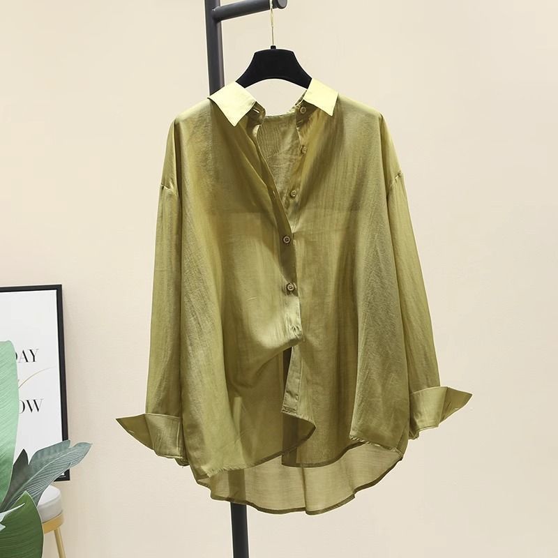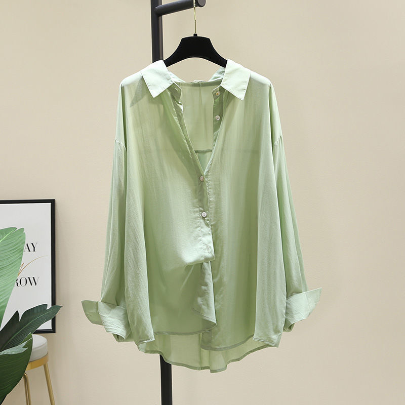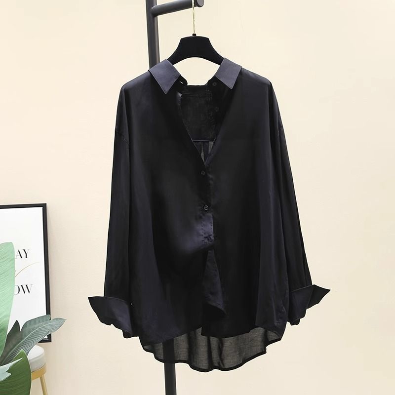 검은 얇은 선스크린 셔츠 여성용 게으른 봄과 여름 새로운 느슨한 캐주얼 긴팔 셔츠 세련된 현대 댄스 탑