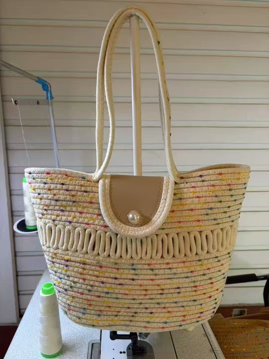 짠 밀짚 가방 여성 대용량 2025 새로운 패션 여름 올 매치 숄더 비치 가방 토트 백