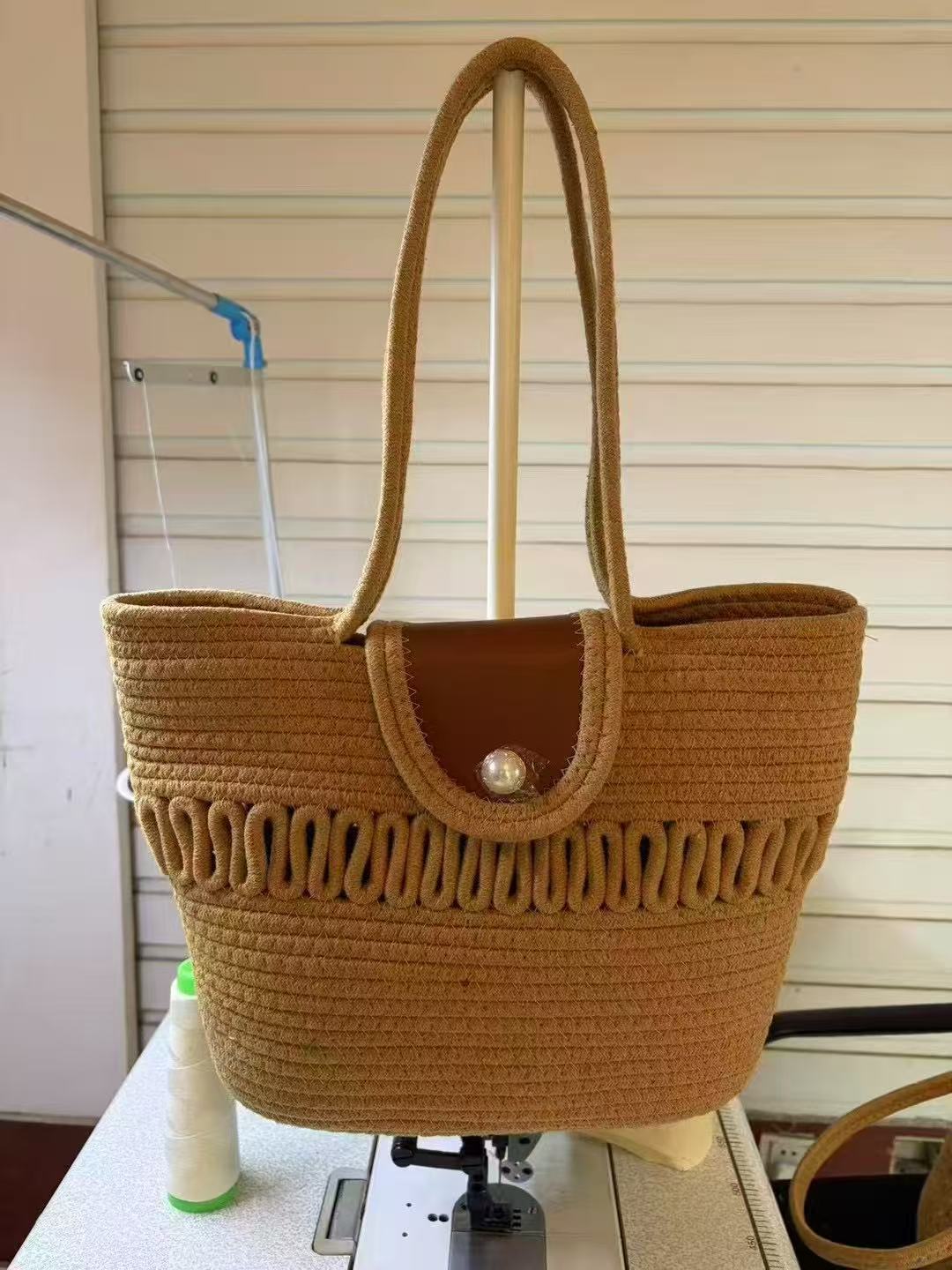 짠 밀짚 가방 여성 대용량 2025 새로운 패션 여름 올 매치 숄더 비치 가방 토트 백스토어 가기