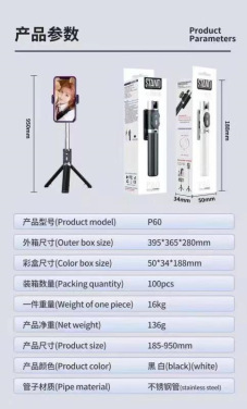 블루투스 셀카 셀카 스틱 바닥 삼각대 통합 텔레스코픽 휴대용 라이트와 R1S 휴대 전화 브래킷