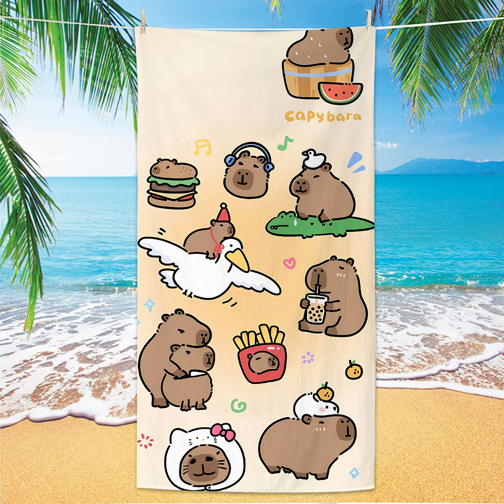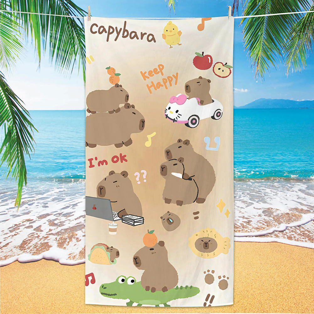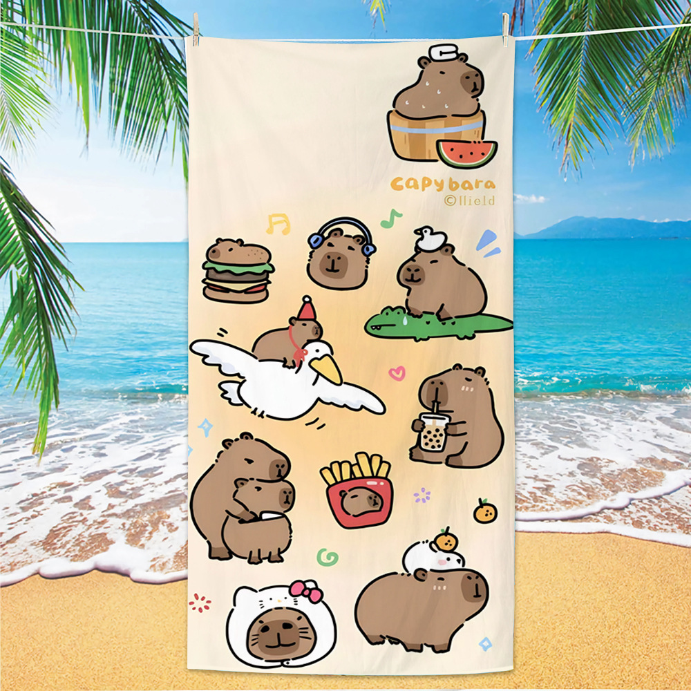 2025 새로운 국경 Kapibala 비치 타월 흡수성 속건성 비치 타월 마이크로 화이버 만화 수영 타월