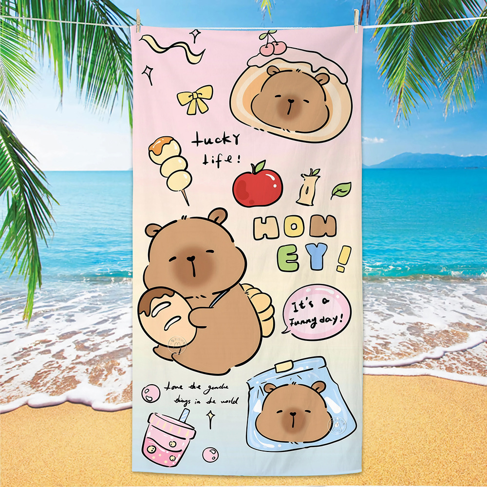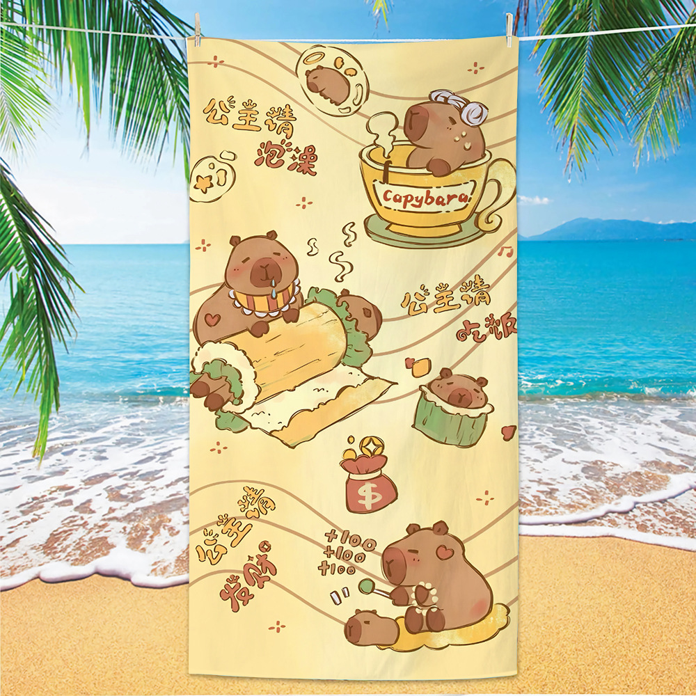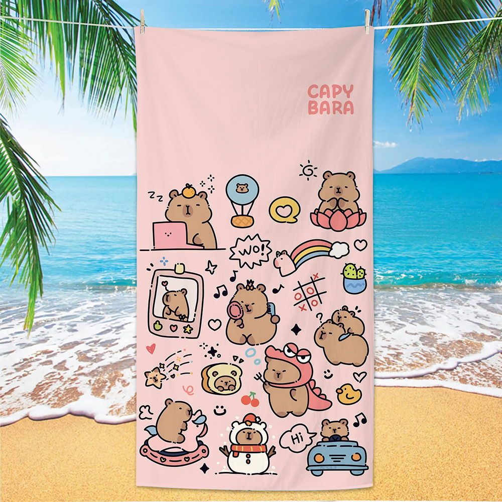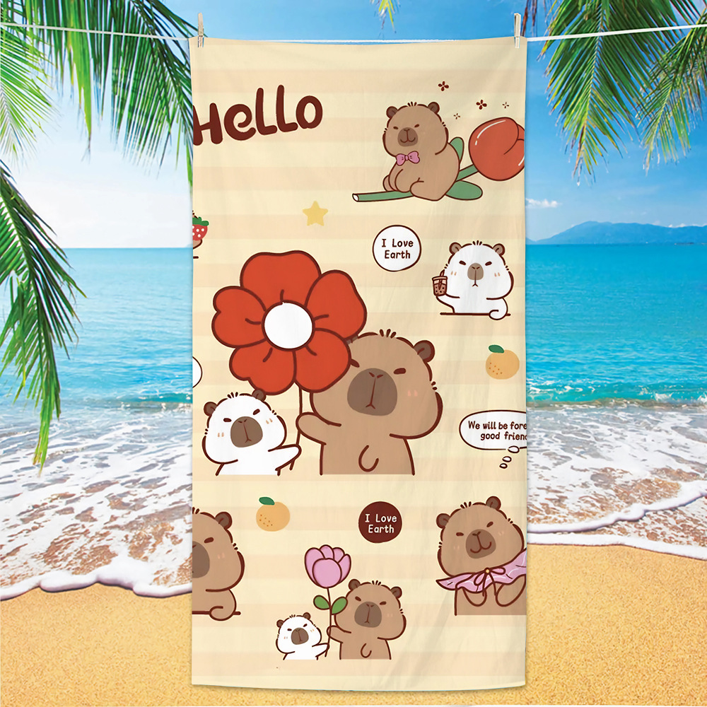 2025 새로운 국경 Kapibala 비치 타월 흡수성 속건성 비치 타월 마이크로 화이버 만화 수영 타월