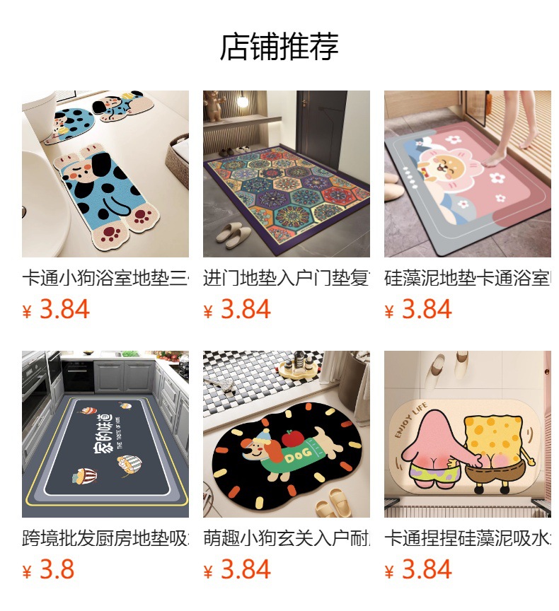 욕실 바닥 매트 화장실 문 미끄럼 방지 발 매트 변기 진흙 흡수성 매트 빠른 건조 만화 홈 바닥 담요스토어 가기