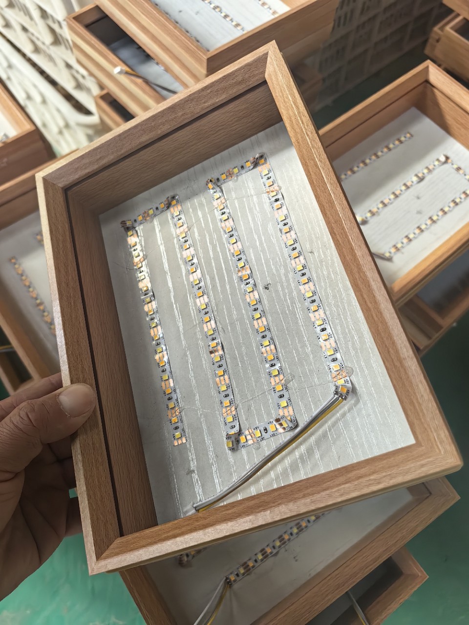 제조업체 도매 잎 조각 조명 그림 액자 충전식 야간 조명 나무 경사형 발광 액자 신중국풍 장식스토어 가기