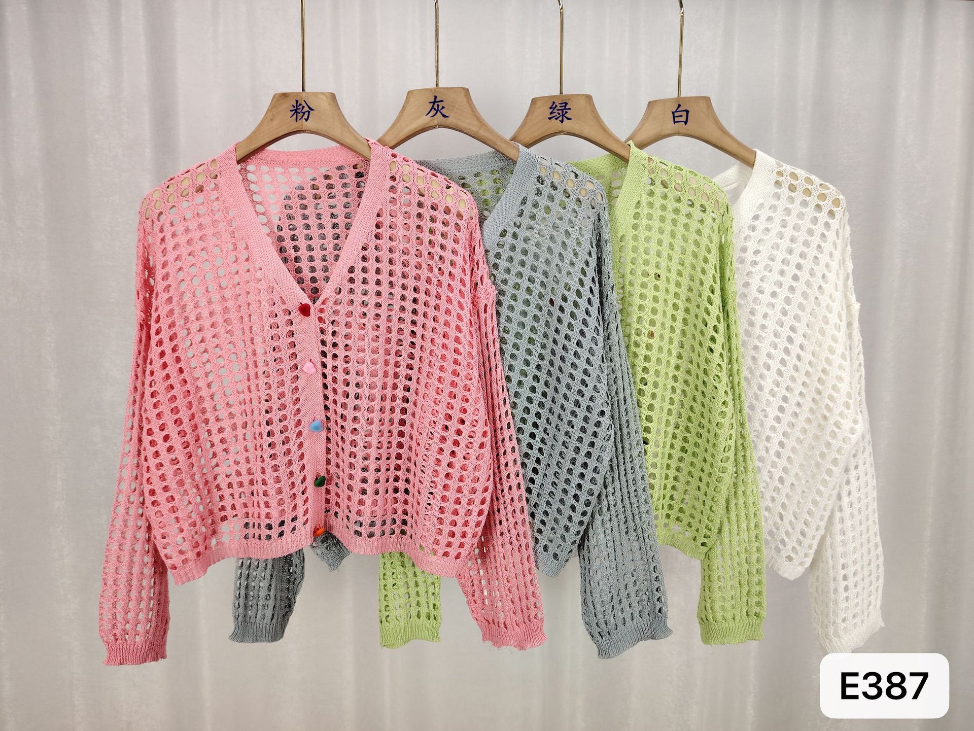 V 넥 중공 짧은 긴팔 니트 카디건 여성 초가을 새로운 컬러 러브 버튼 자외선 차단제 긴팔 탑스토어 가기