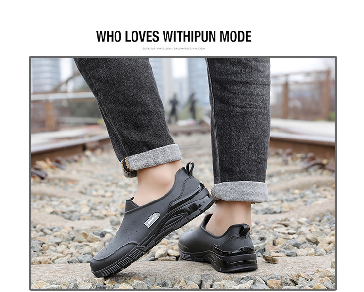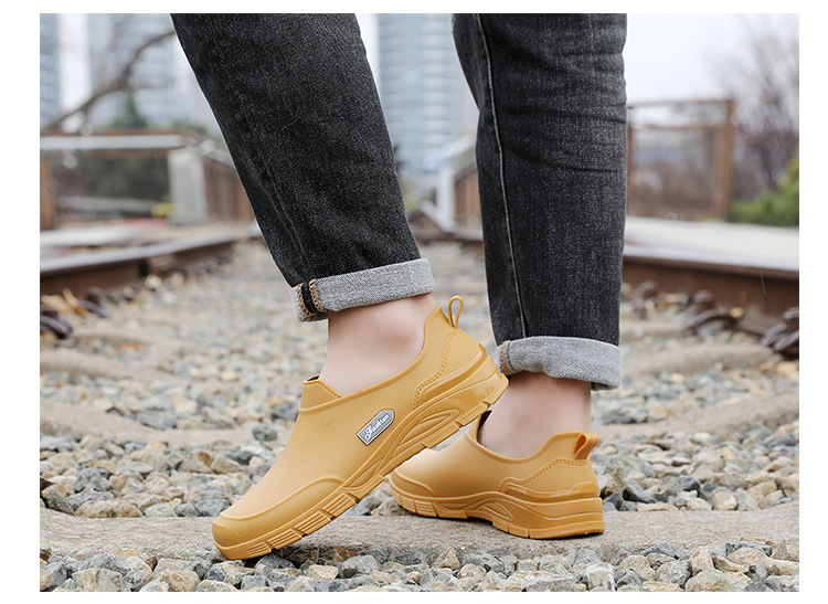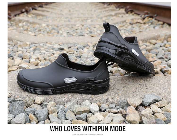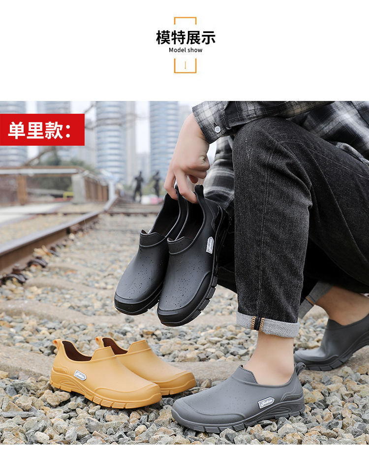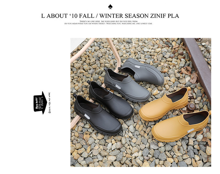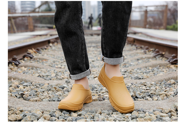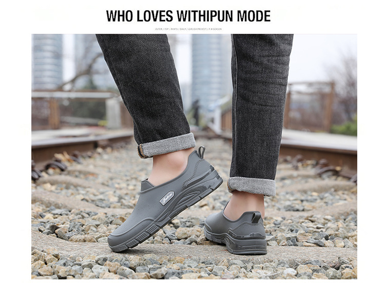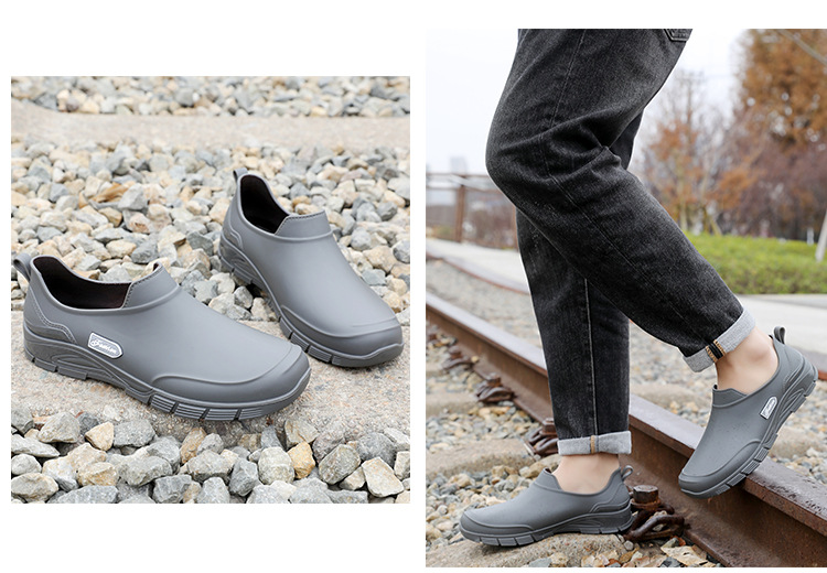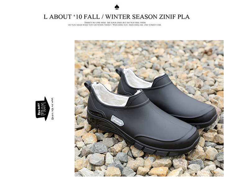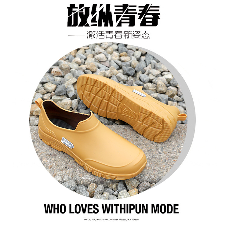 남성용 대외 무역 로우탑 레인부츠, 사계절 캐주얼하고 패셔너블한 남성용 짧은 레인부츠, 플랫솔 방수 플러스 벨벳 워터슈즈, 미끄럼 방지스토어 가기