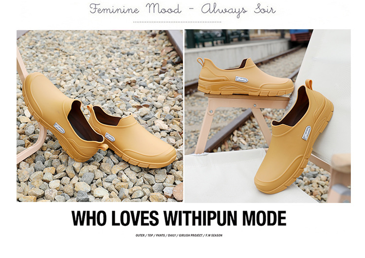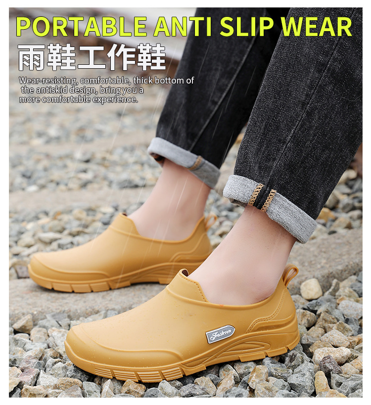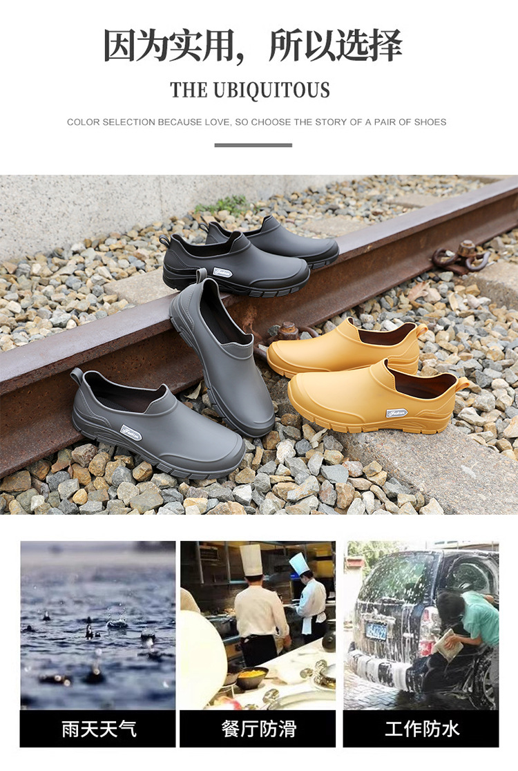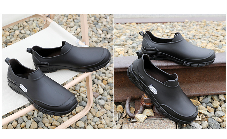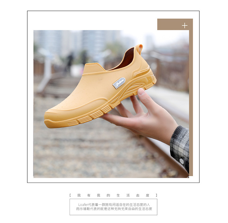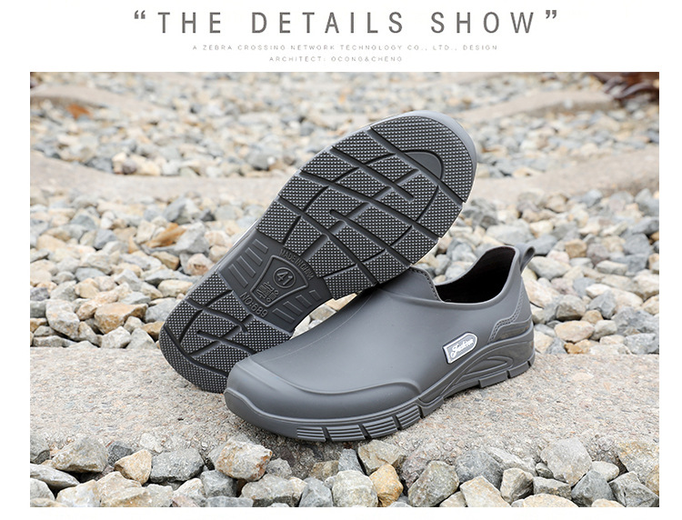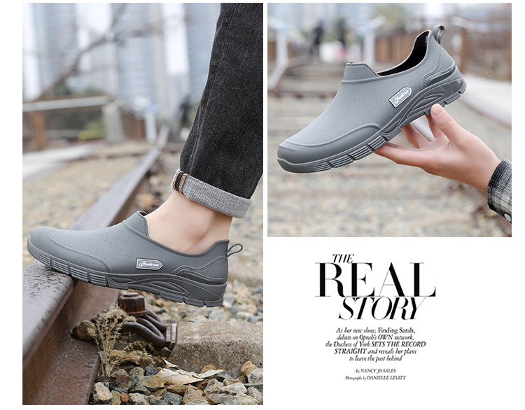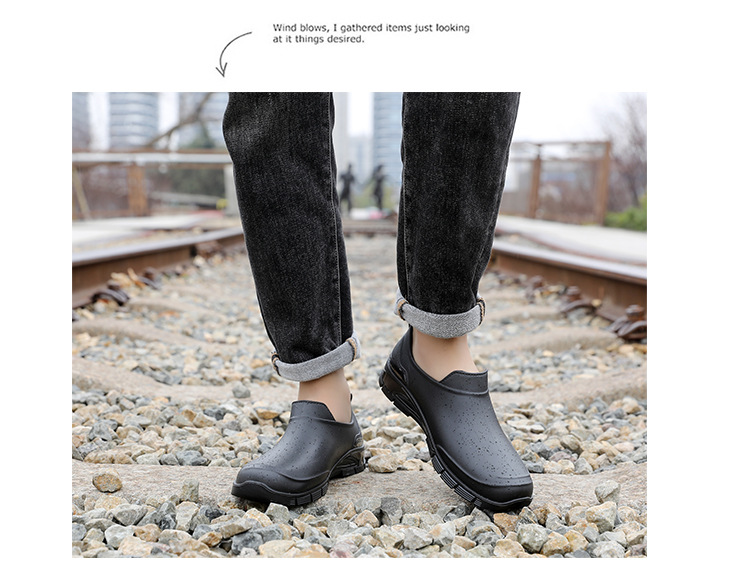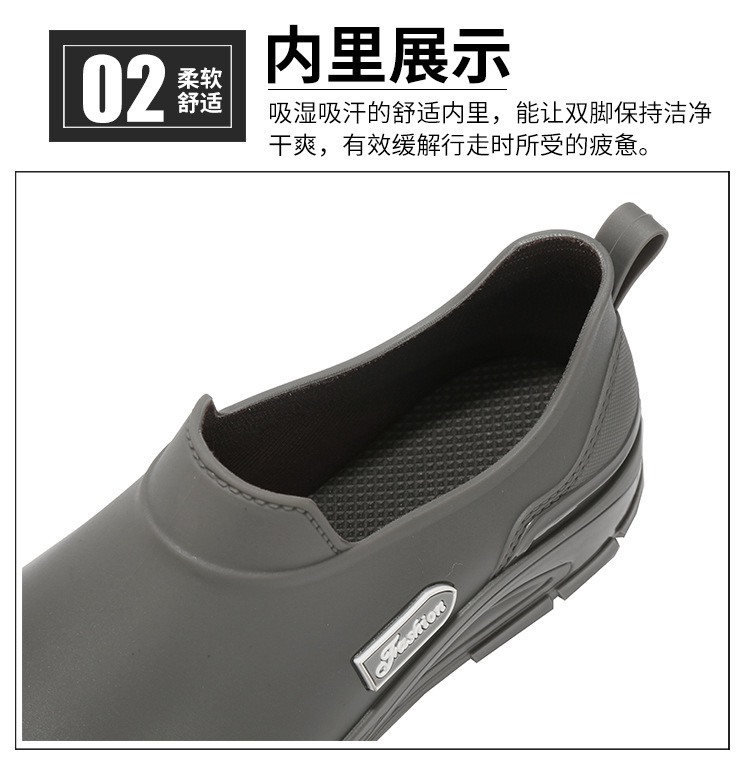 남성용 대외 무역 로우탑 레인부츠, 사계절 캐주얼하고 패셔너블한 남성용 짧은 레인부츠, 플랫솔 방수 플러스 벨벳 워터슈즈, 미끄럼 방지스토어 가기