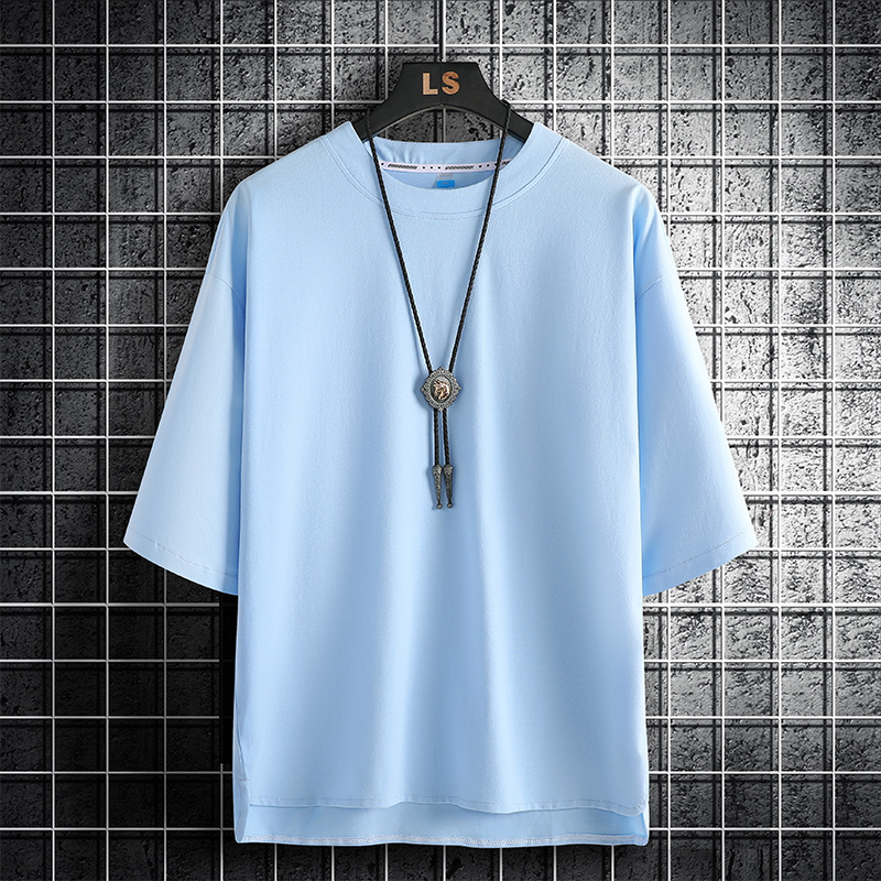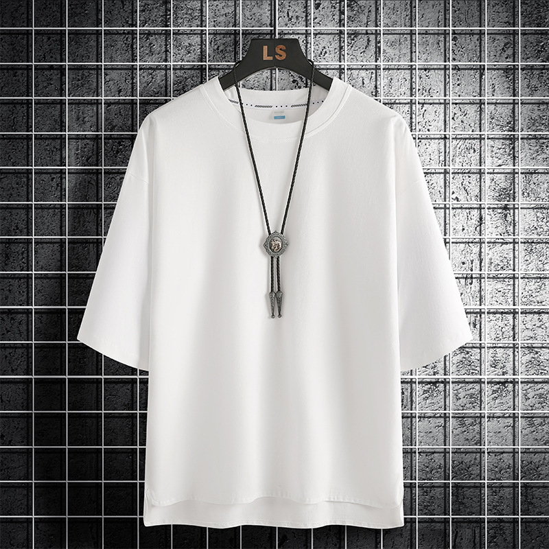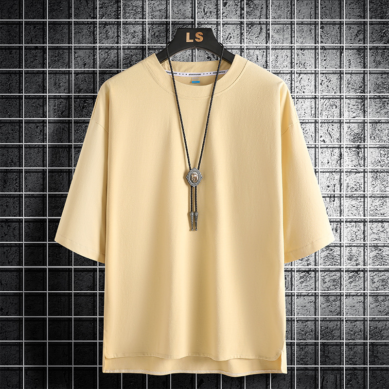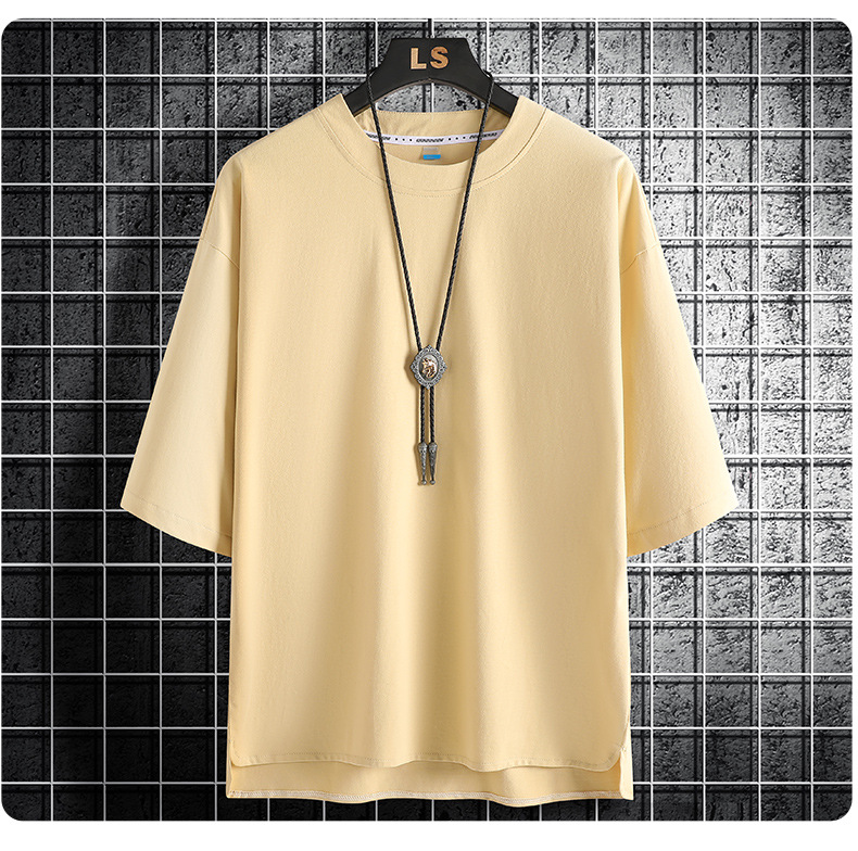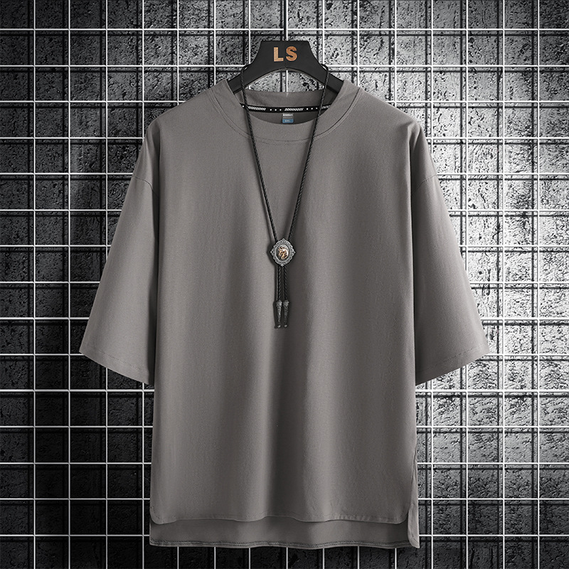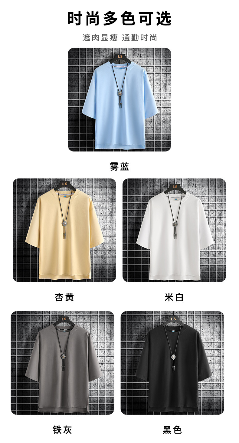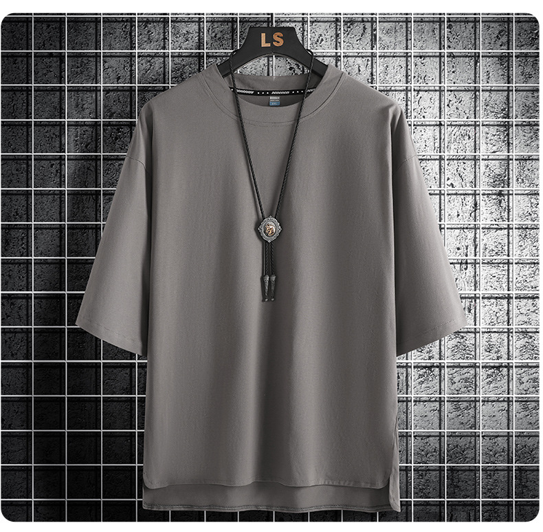 공장 직접 40.00 kg-150.00 kg 면 둥근 목 짧은 소매 티셔츠 남성용 여름 얇은 단색 올 매치 7 점 소매 반 소매 T