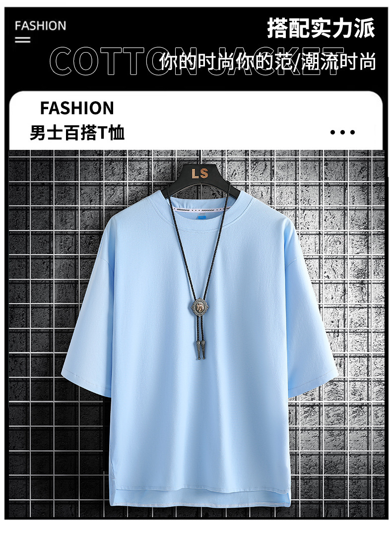 공장 직접 40.00 kg-150.00 kg 면 둥근 목 짧은 소매 티셔츠 남성용 여름 얇은 단색 올 매치 7 점 소매 반 소매 T스토어 가기