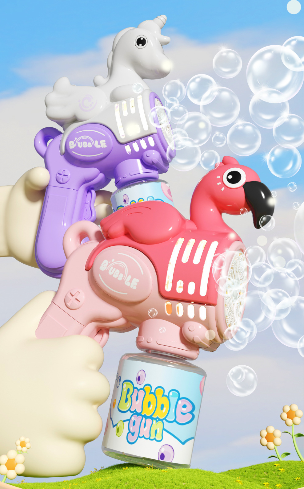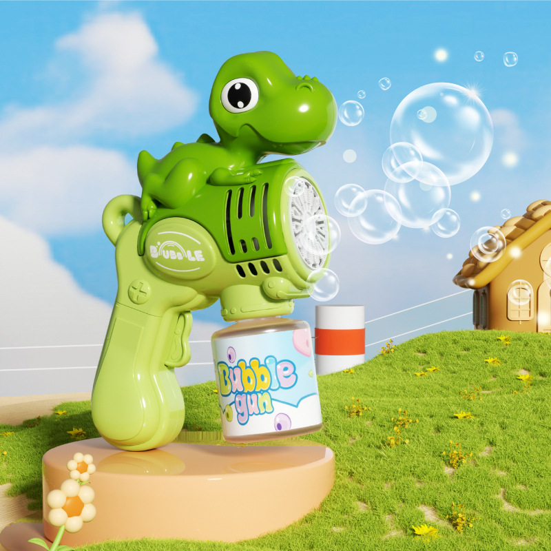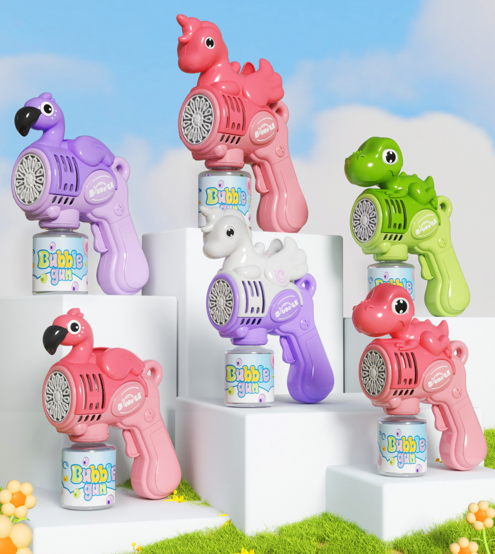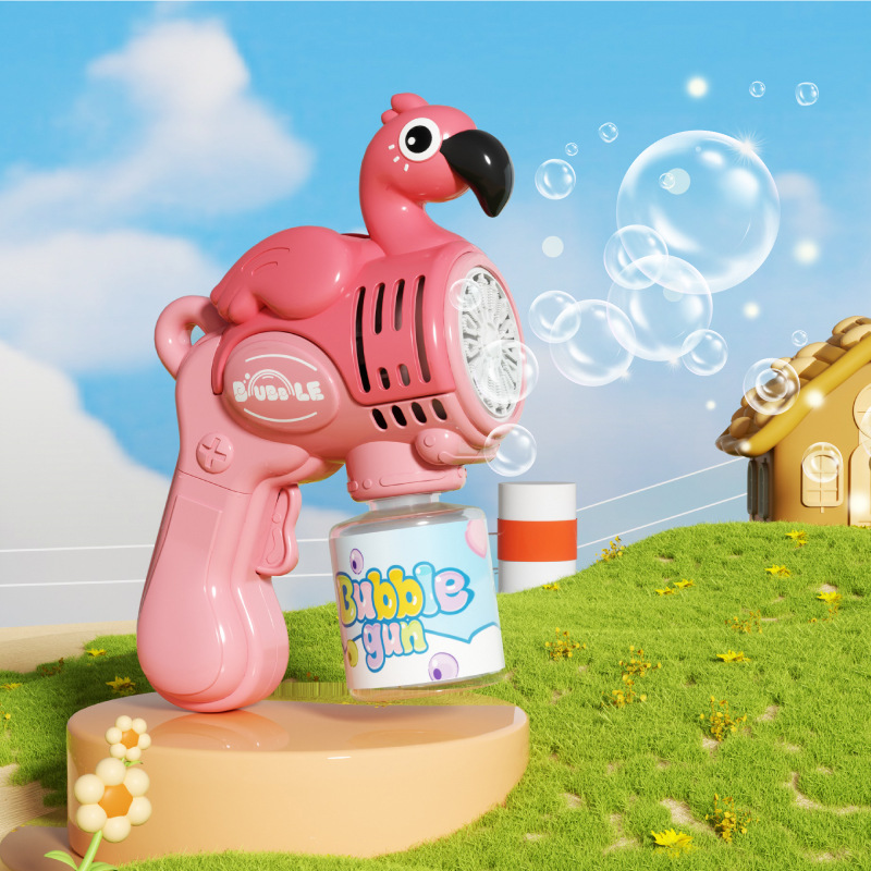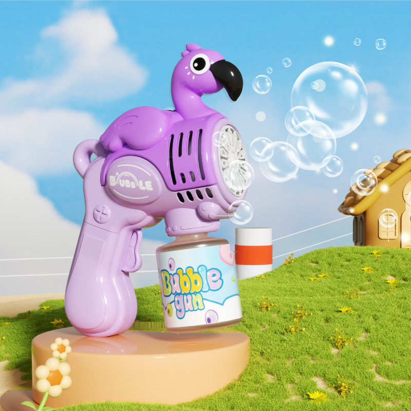 새로운 어린이 장난감 휴대용 전기 거품 총 야외 소년 소녀 장난감 플라밍고 부는 거품 공룡 도매