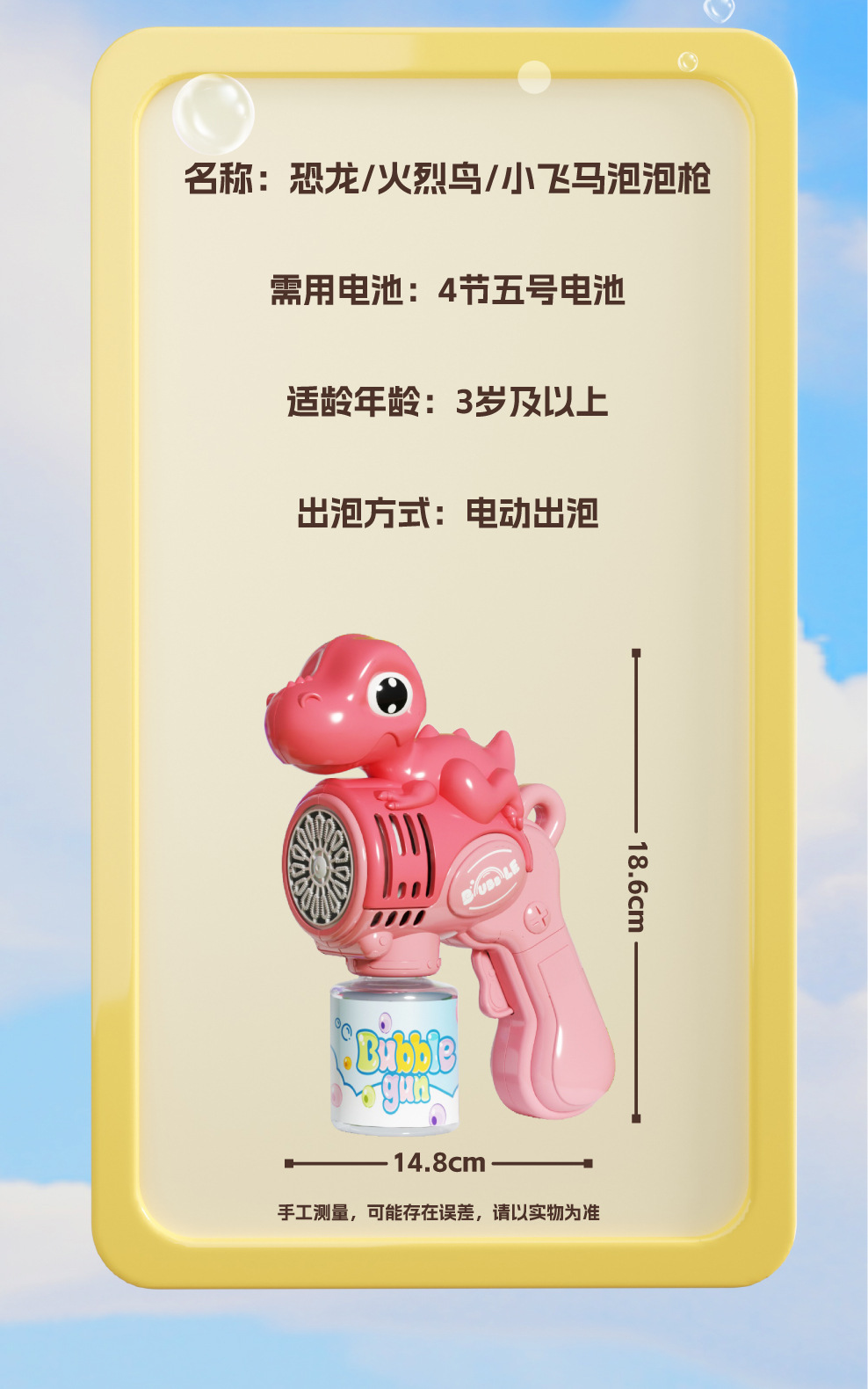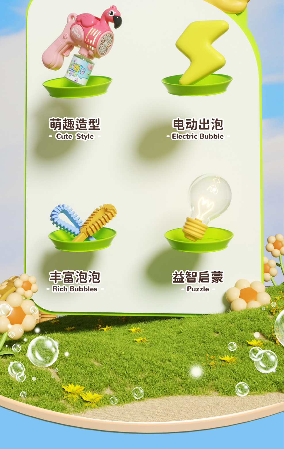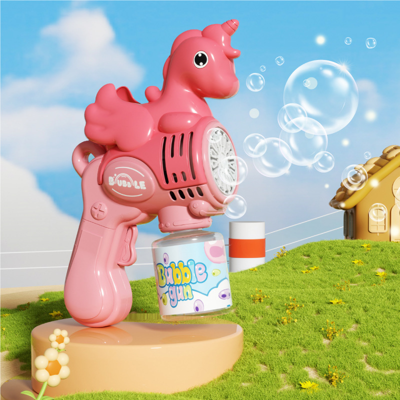 새로운 어린이 장난감 휴대용 전기 거품 총 야외 소년 소녀 장난감 플라밍고 부는 거품 공룡 도매