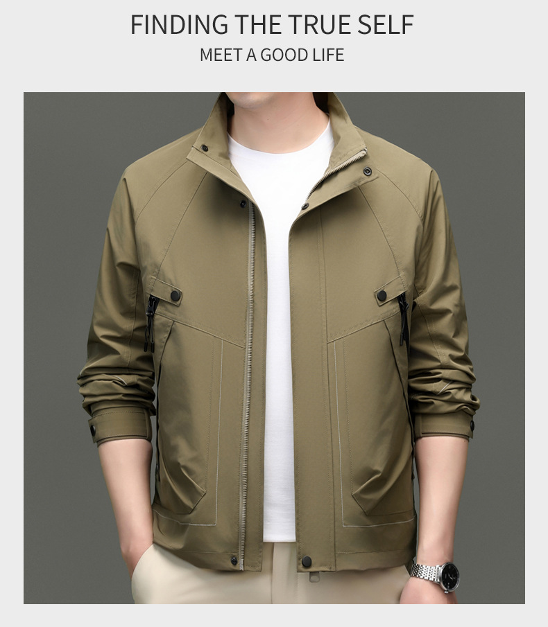 30대 가을 청소년 남성 작업복 재킷 2025 봄 신작 지퍼 스탠드 칼라 루즈한 얇은 재킷 트렌드