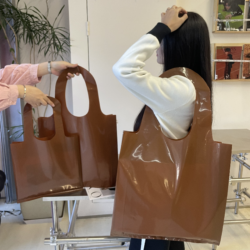 • 카라멜 브라운 블랭크 모델, 중간 크기 40*36*8 측면 23 실크