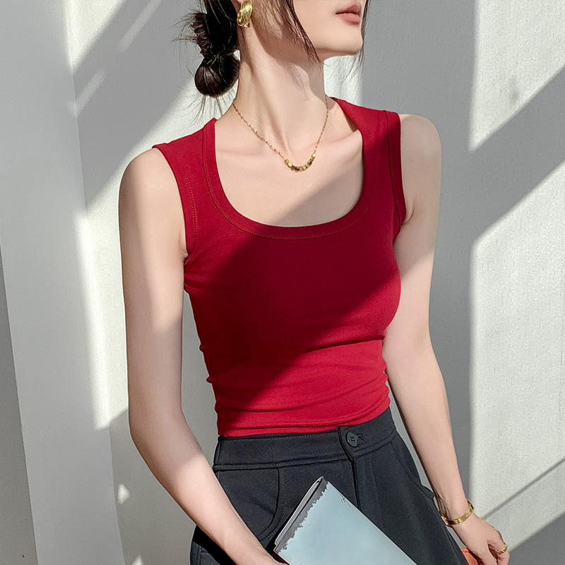 한국 스타일 코튼 카미 솔 여름 2025 새로운 스타일 가슴 랩 넓은 어깨 끈 내부 스트랩 가슴 패드베이스 민소매 탑스토어 가기