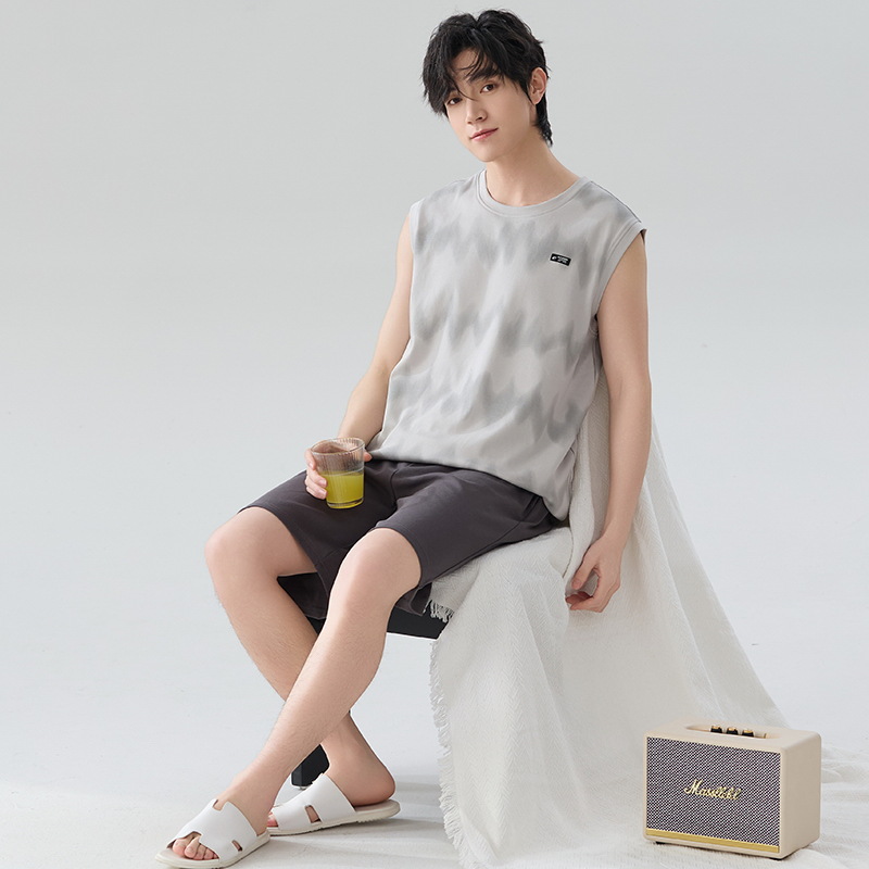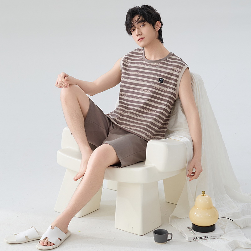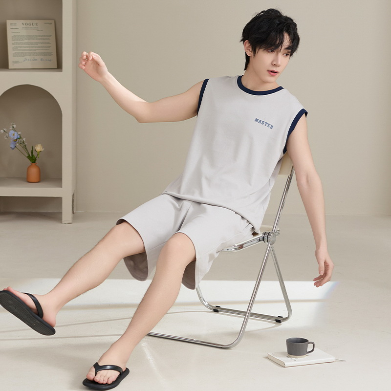 클래스 A 항균 남성 잠옷 여름 순수 코튼 조끼 민소매 남성 청소년 대형 홈웨어 여름 정장스토어 가기
